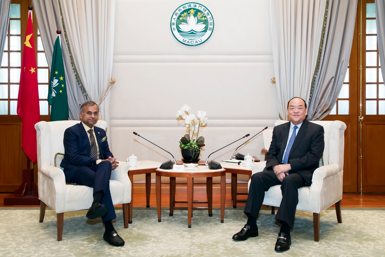 O dirigente máximo da Região Administrativa Especial de Macau (RAEM) deu as boas-vindas ao novo coordenador residente das Nações Unidas na China e fez uma breve apresentação sobre o desenvolvimento do território e a orientação geral da acção governativa. Indicou que, segundo as instruções do Governo Central, Macau tem vindo a impulsionar, activamente, a estratégia do desenvolvimento sustentável. Lembrou que a RAEM é a plataforma de serviços para a cooperação comercial entre a China e os países de língua portuguesa e tem mantido relações estreitas com os países lusófonos e os seus representantes destacados no Secretariado Permanente do Fórum para a Cooperação Económica e Comercial entre a China e os Países de Língua Portuguesa (Macau), implementando, assim, uma cooperação multilateral, no sentido de alcançar a meta do desenvolvimento colectivo. Adiantou que o Instituto Internacional para Tecnologia de Programação da Universidade das Nações Unidas em Macau, desde a sua criação, tem vindo a formar muitos quadros qualificados, pelo que, no futuro, irão pesquisar, em conjunto, formas de desempenhar um papel mais eficaz.