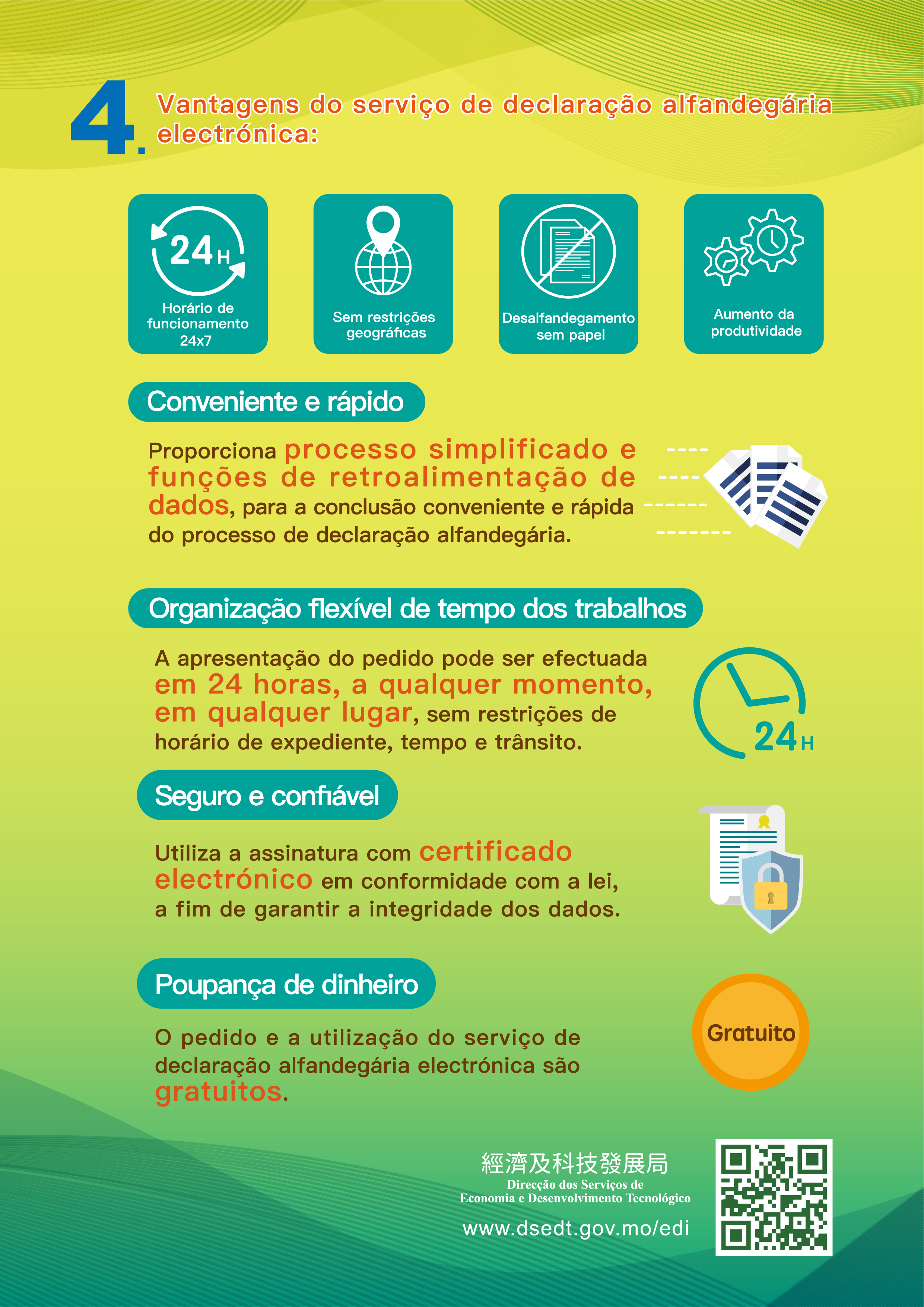 Para mais informações sobre o serviço de declaração alfandegária electrónica, é favor contactar a DSEDT através da linha aberta: 2822 8111 ou 2822 8188, ou através do e-mail (edi.info@dsedt.gov.mo).