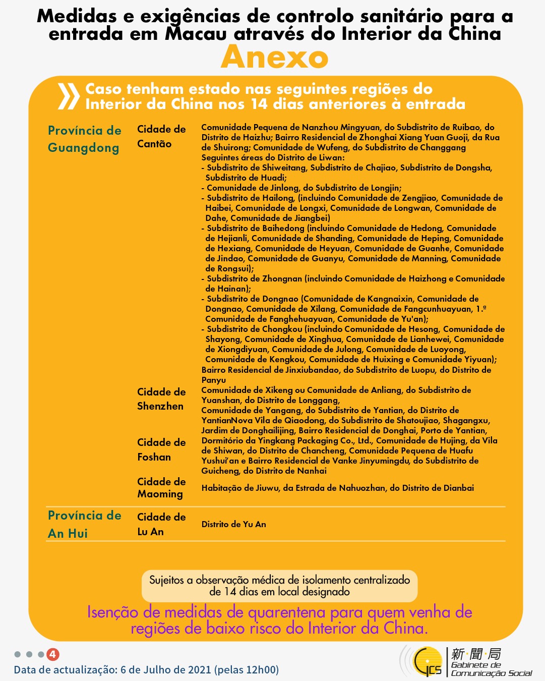 (Infografia)Medidas e exigências de controlo sanitário para a entrada em Macau de indivíduos de diferentes identidades, actualizadas no dia 6 de Junho de 2021