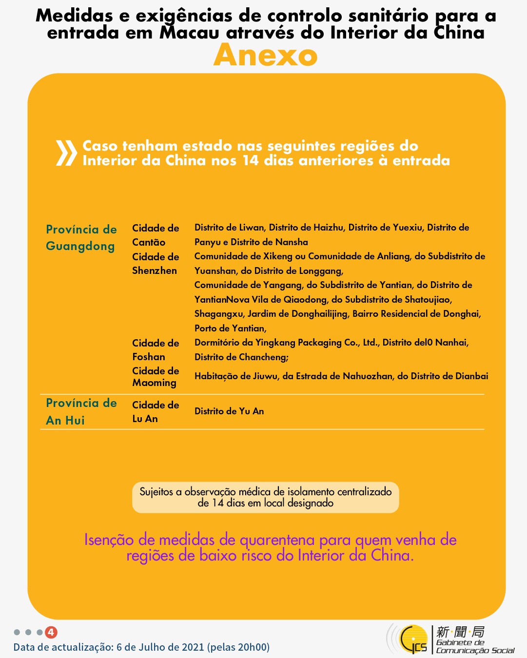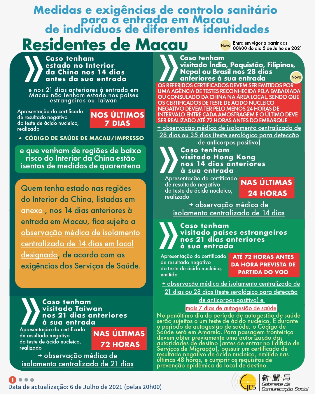 (Infografia)Medidas e exigências de controlo sanitário para a entrada em Macau de indivíduos de diferentes identidades, actualizadas no dia 6 de Junho de 2021
