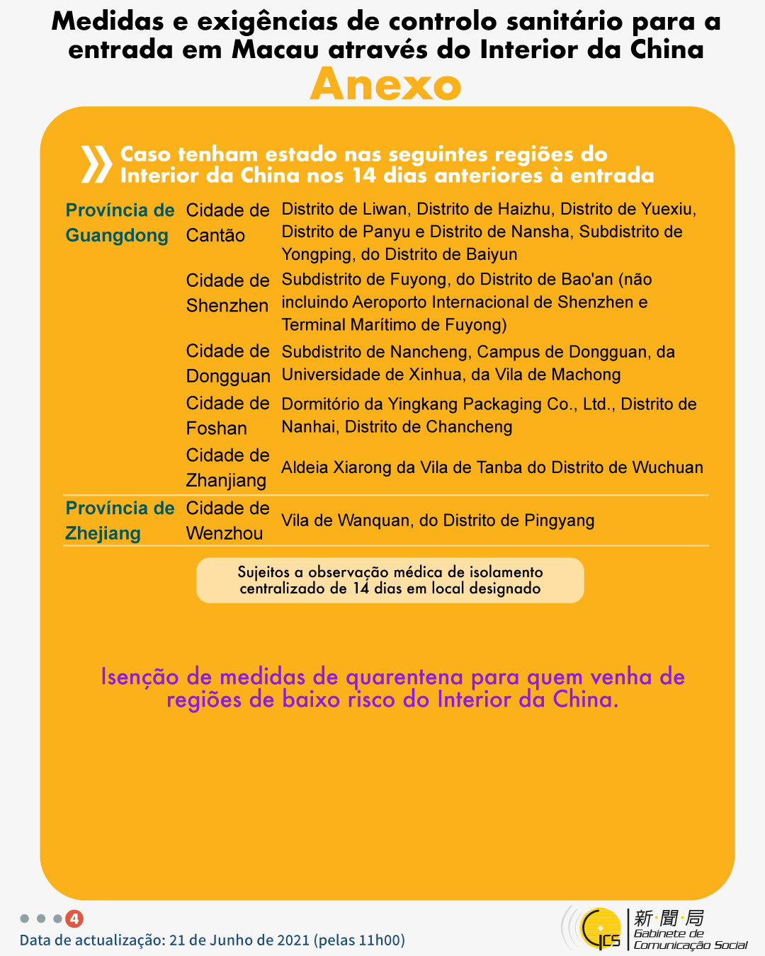 (Infografia)Medidas e exigências de controlo sanitário para a entrada em Macau de indivíduos de diferentes identidades, actualizadas no dia 21 de Junho de 2021