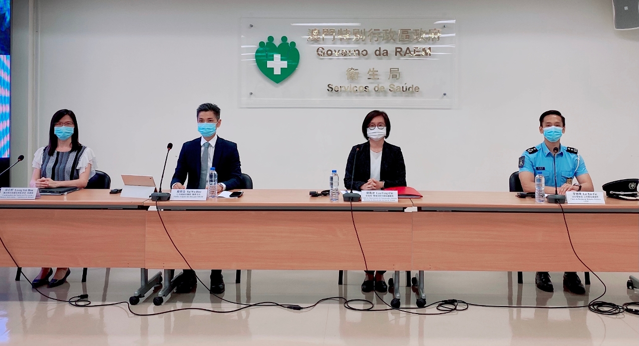 Estiveram presentes na conferência de imprensa: o Médico-Adjunto da Direcção do Centro Hospitalar Conde de São Januário, Dr. Tai Wa Hou, a Chefe do Departamento de Comunicação e Relações Externas da Direcção dos Serviços de Turismo, Dr.ª Lau Fong Chi, o chefe da Divisão de Ligação entre Polícia e Comunidade e Relações Públicas, Dr. Lei Tak Fai e a Coordenadora do Núcleo de Prevenção de Doenças Infecciosas e Vigilância de Doença do Centro de Prevenção e Controlo da Doença dos Serviços de Saúde, Dr.ª Leong Iek Hou.
