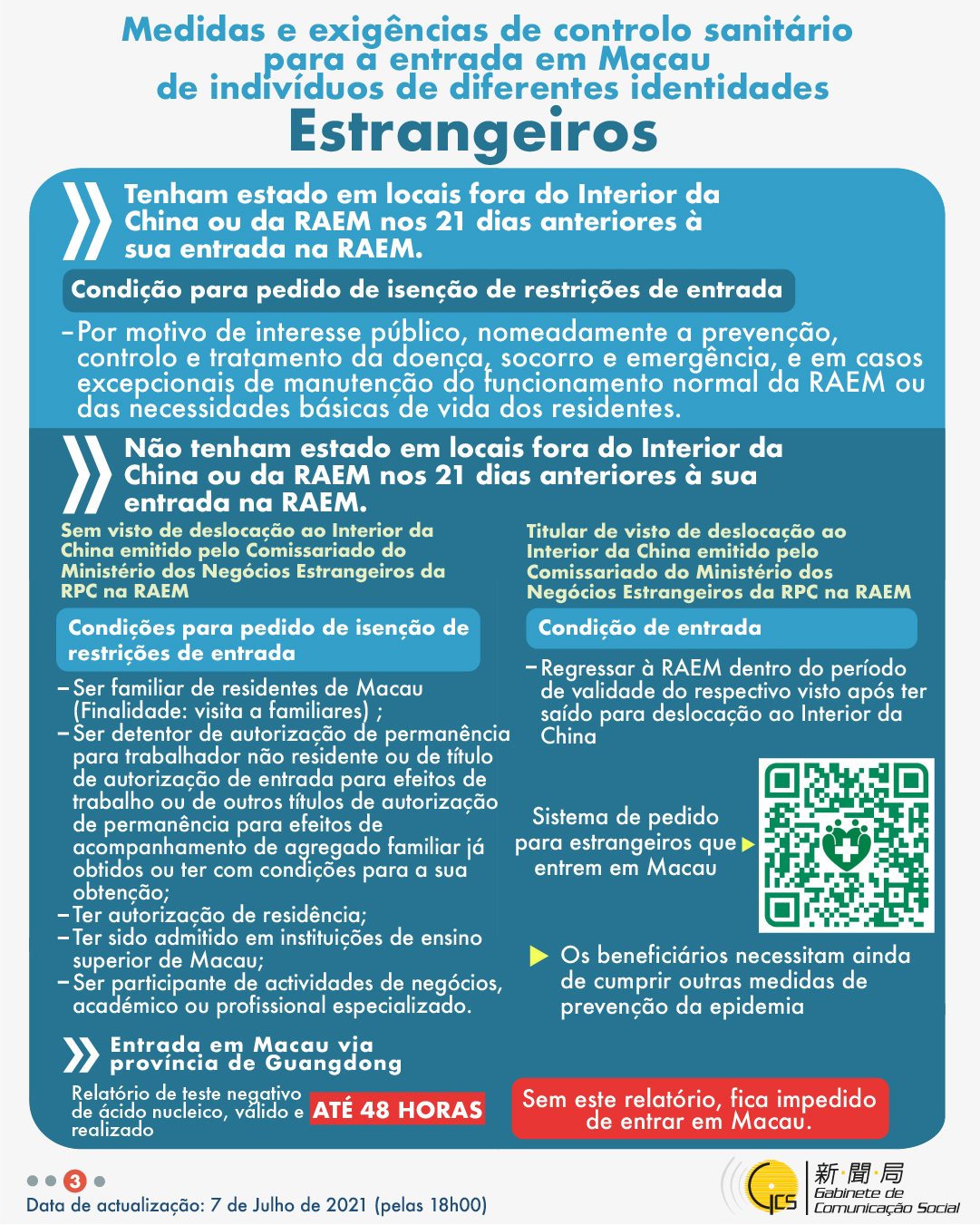 (Infografia)Medidas e exigências de controlo sanitário para a entrada em Macau de indivíduos de diferentes identidades, actualizadas no dia 7 de Julho de 2021
