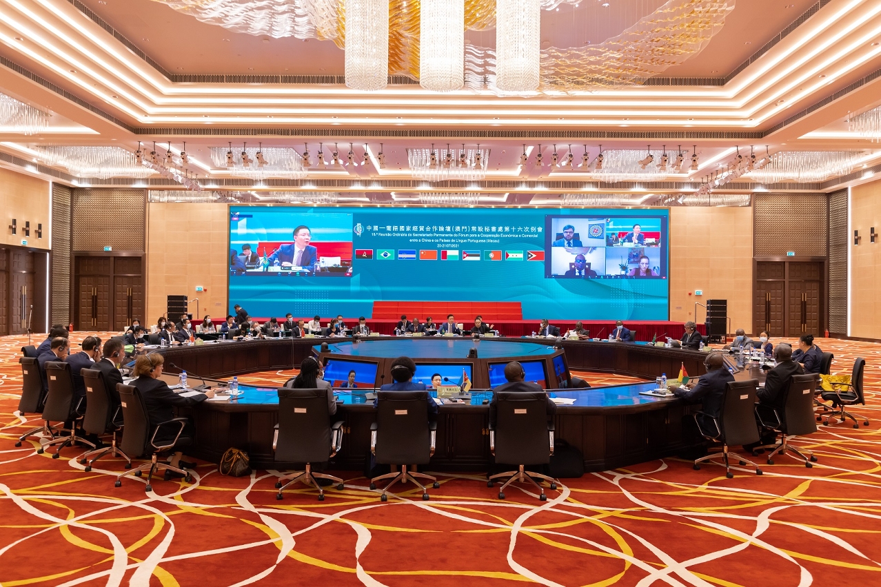 Realizou-se no dia 20 de Julho de 2021, em Macau, a 16.ª Reunião Ordinária do Secretariado Permanente do Fórum para a Cooperação Económica e Comercial entre a China e os Países de Língua Portuguesa (Macau), marcada com a presença de cerca de 30 representantes provenientes do Governo Central da China, das Embaixadas dos Países de Língua Portuguesa em Pequim, do Governo da RAEM, e do Departamento dos Assuntos Económicos e Delegação Comercial do Gabinete de Ligação do Governo Central em Macau. A reunião foi presidida pelo Secretário-Geral Adjunto, Dr. Ding Tian. Durante a reunião, os participantes discutiram sobre o pedido de adesão da República da Guiné Equatorial ao Fórum de Macau, e acordaram recomendar aos Ministros a aprovação do referido processo de adesão na Reunião Extraordinária Ministerial do Fórum de Macau que será realizada em Outubro de 2021. Posteriormente, o Secretário-Geral Adjunto, Dr. Ding Tian, fez um balanço dos trabalhos desenvolvidos pelo Secretariado Permanente do Fórum de Macau entre 2020 e o primeiro semestre de 2021. As diversas partes discutiram e aprovaram o Programa de Actividades do Secretariado Permanente do Fórum de Macau para 2021.