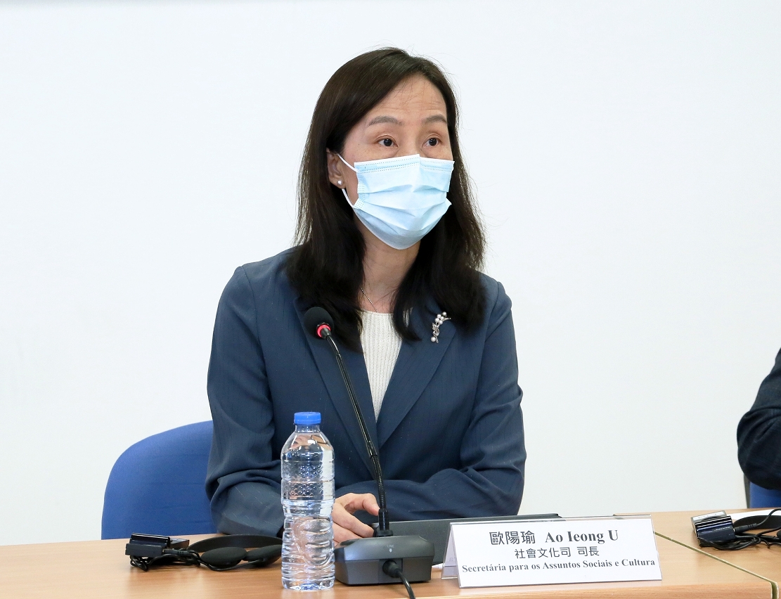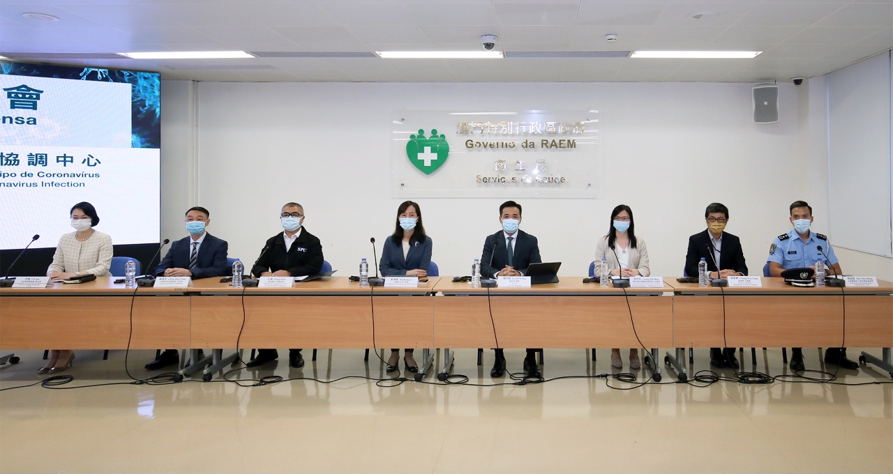 Estiveram presentes na conferência de imprensa: a Secretária para os Assuntos Sociais e Cultura, Dr.ª Ao Ieong U, o Director dos Serviços de Saúde, Dr. Lo Iek Long, o Adjunto do Comandante-Geral dos Serviços de Polícia Unitários, Dr. Wong Kin, o Director da Direcção dos Serviços de Economia e Desenvolvimento Tecnológico Subst.º, Dr. Chan Hon Sang, a Vice-Presidente do Conselho de Administração para os Assuntos Municipais do Instituto para os Assuntos Municipais, Dr.ª O Lam, o Subdirector da Direcção dos Serviços de Turismo, Dr. Cheng Wai Tong, o Chefe da Divisão de Operações e Comunicações da PSP, Dr. Ma Chio Hong e a Coordenadora do Núcleo de Prevenção de Doenças Infecciosas e Vigilância de Doença do Centro de Prevenção e Controlo da Doença dos Serviços de Saúde, Dr.ª Leong Iek Hou.