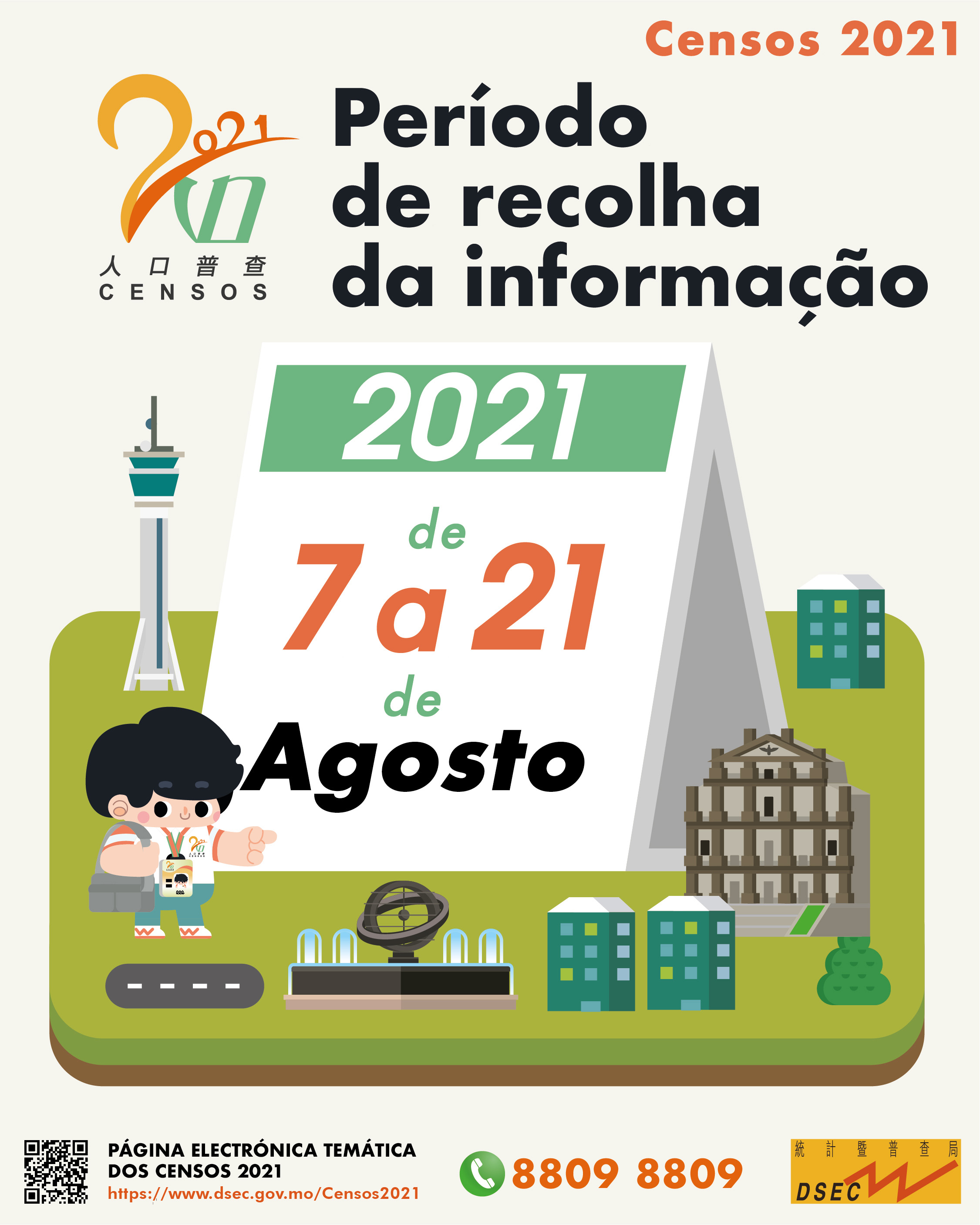 Para mais pormenores sobre os Censos, queira aceder à página electrónica temática dos Censos 2021: https://www.dsec.gov.mo/Censos2021, ou ligar para a linha azul dos Censos 8809 8809.