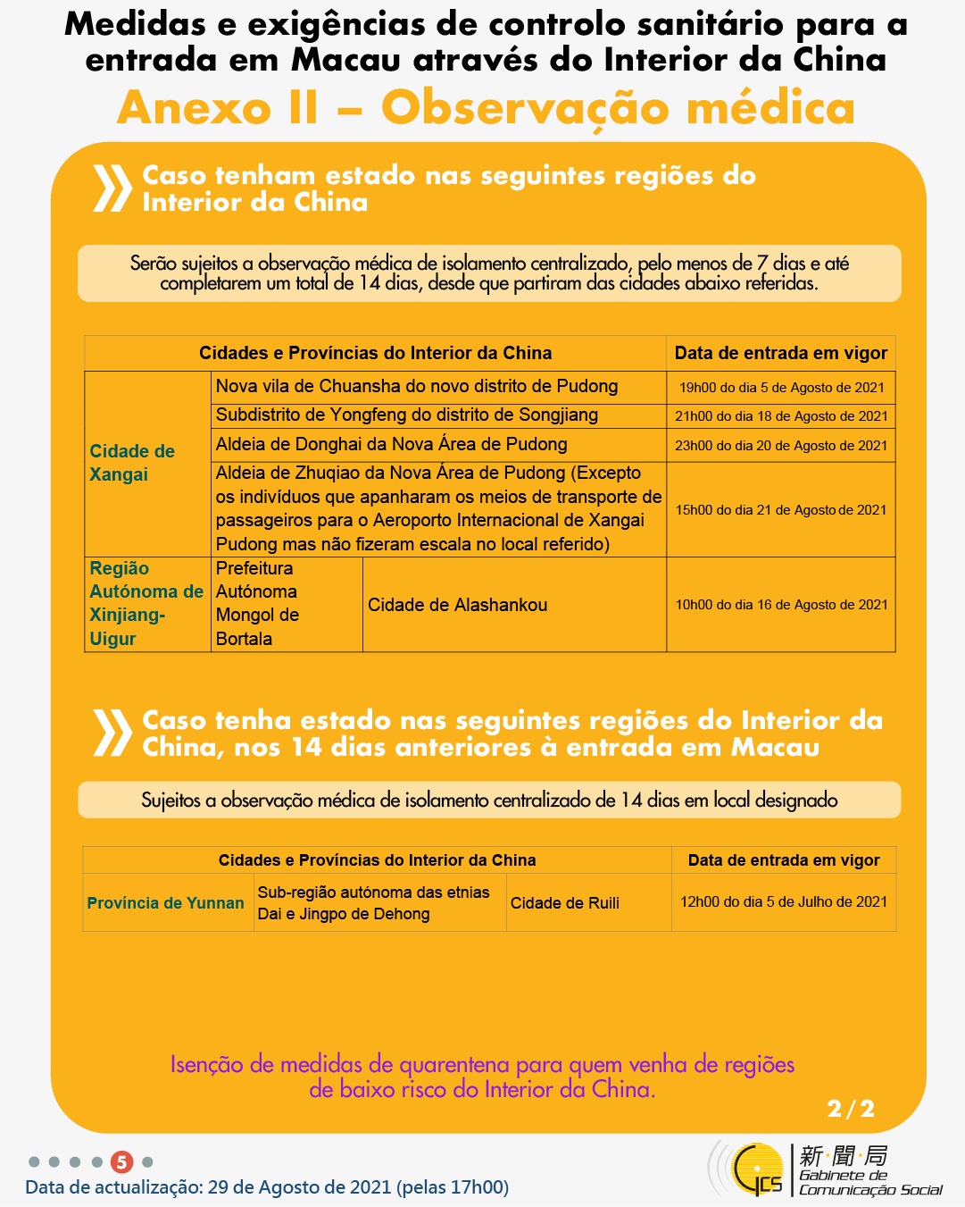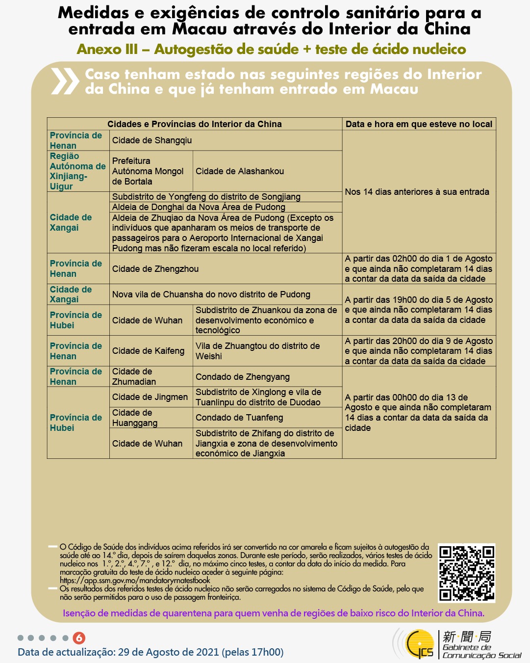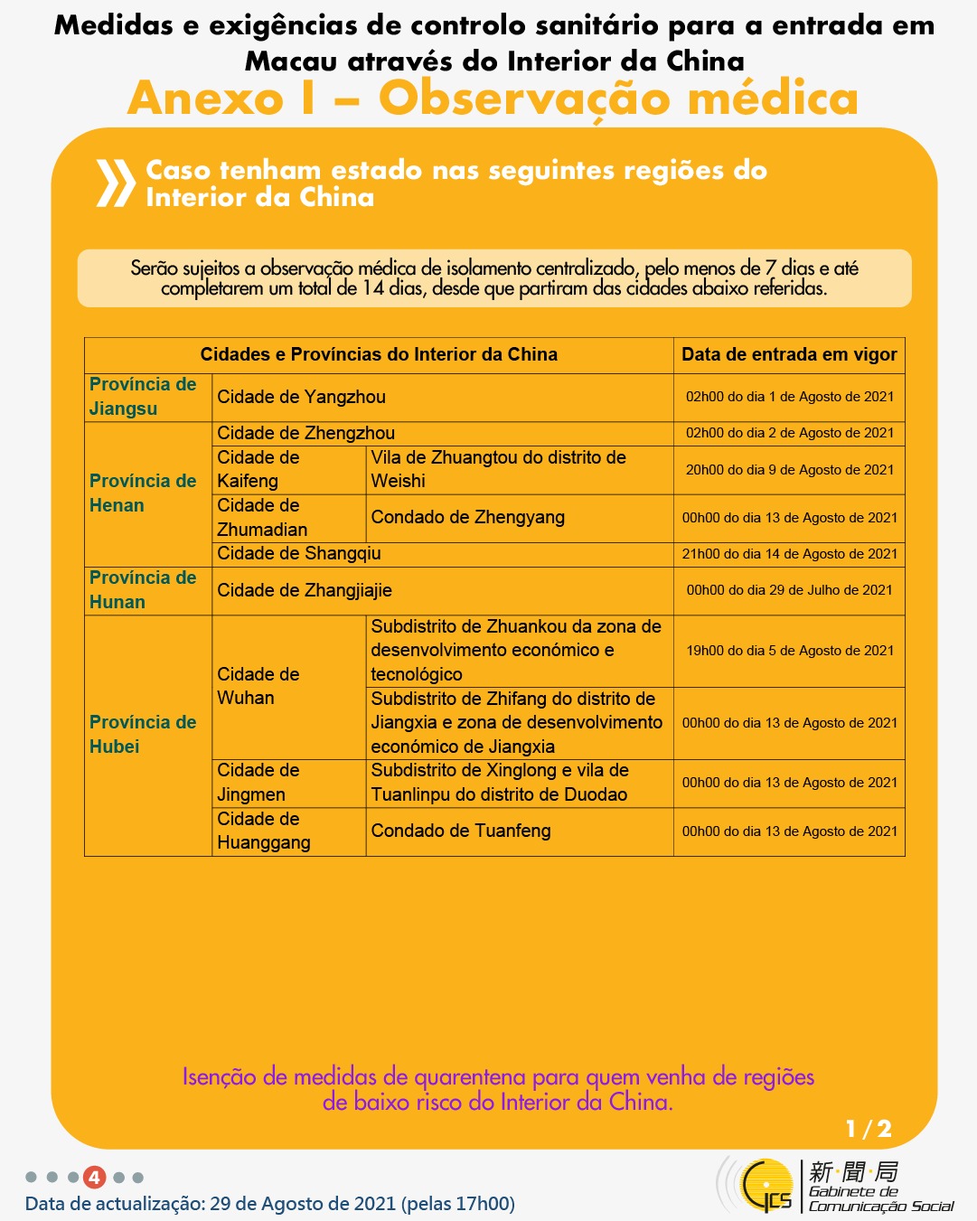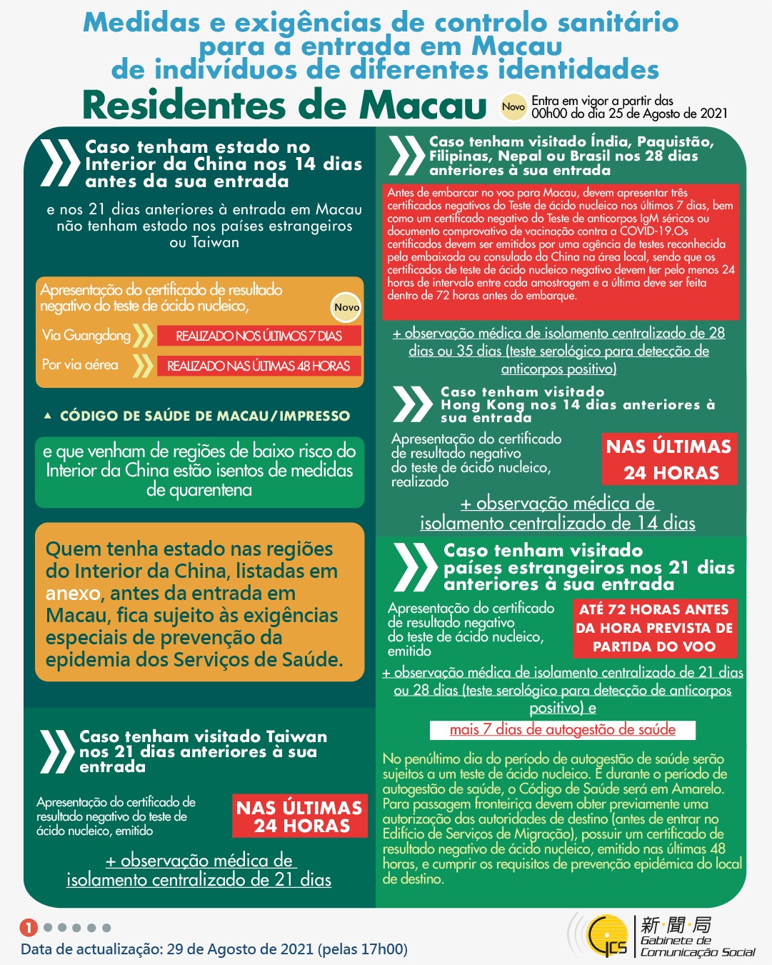 (Infografia)Medidas e exigências de controlo sanitário para a entrada em Macau de indivíduos de diferentes identidades, actualizadas no dia 29 de Agosto de 2021