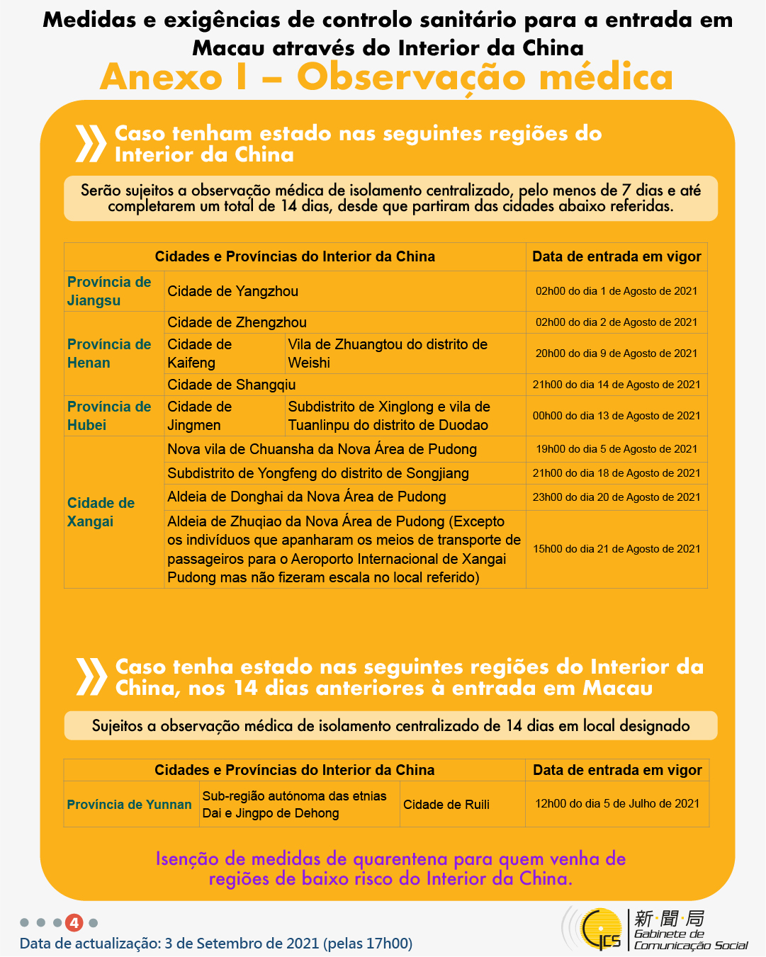 (Infografia)Medidas e exigências de controlo sanitário para a entrada em Macau de indivíduos de diferentes identidades, actualizadas no dia 3 de Setembro de 2021