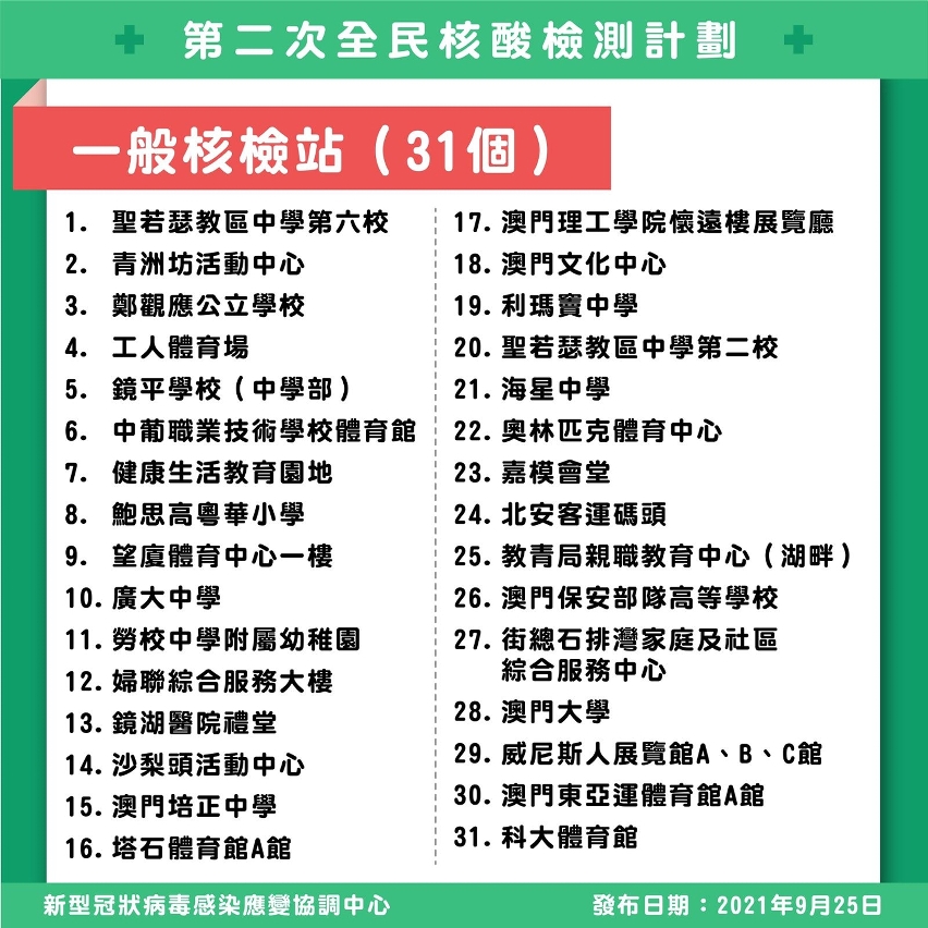 Actualmente, existe um número suficiente de vagas nos postos de testes de ácido nucleico, por isso, o Centro de Coordenação de Contingência apela aos residentes, que ainda não concluíram o teste de ácido nucleico, para recolherem as amostras o mais rápido possível, evitando assim esperas prolongadas no último dia da testagem massiva.