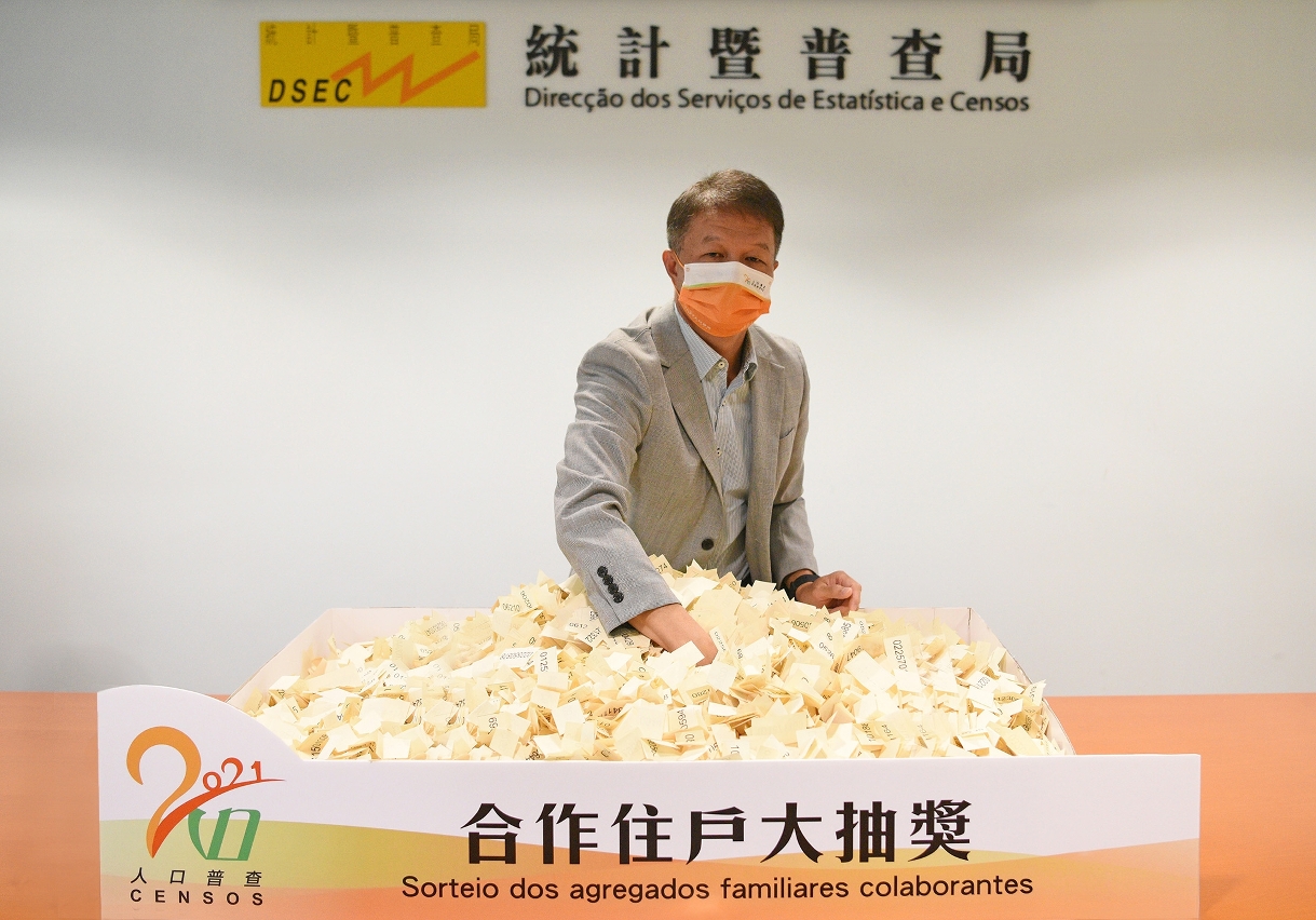 A operação da recolha de informação dos Censos 2021 foi concluída de forma satisfatória. Todos os agregados familiares que concluíram, entre 7 e 28 de Agosto, o preenchimento do questionário dos Censos ficaram automaticamente habilitados ao “Sorteio dos agregados familiares colaborantes”, que foi lançado como forma de agradecimento pela colaboração e apoio prestado pelos agregados. Realizou-se hoje (dia 30) a cerimónia do sorteio, presidida pelo director da Direcção dos Serviços de Estatística e Censos (DSEC), Dr. Ieong Meng Chao. Os números de referência dos agregados familiares premiados são os seguintes: