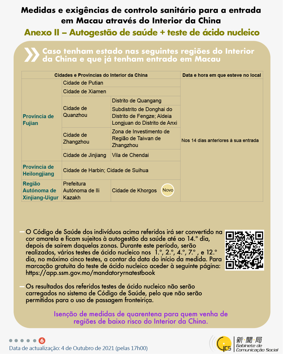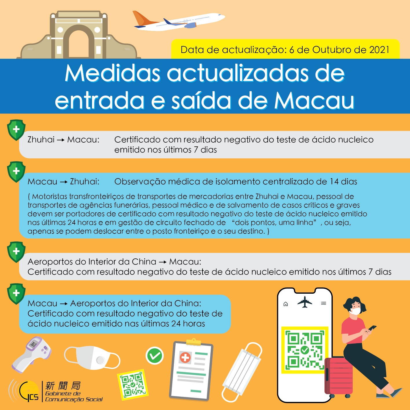 • Medidas mais recentes de entrada e saída de Macau - actualização de 6 de Outubro