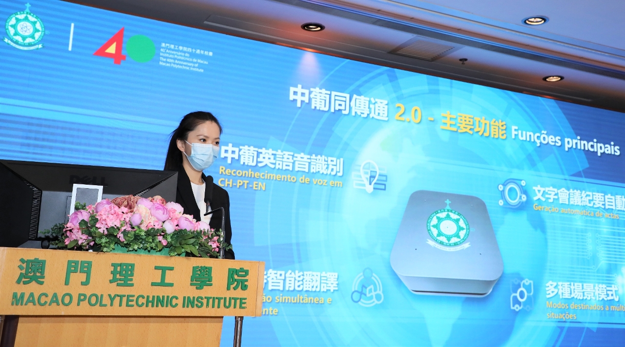Em linha com o desenvolvimento da iniciativa nacional “Uma Faixa, Uma Rota”, com o papel de Macau como plataforma de serviços entre a China e os Países de Língua Portuguesa, bem como com a construção da Grande Baía Guangdong-Hong Kong-Macau e da Zona de Cooperação Aprofundada entre Guangdong e Macau em Hengqin, o “Centro de Investigação de Engenharia em Tecnologia Aplicada à Tradução Automática e Inteligência Artificial, Ministério da Educação" do Instituto Politécnico de Macau (IPM) lançou oficialmente, no dia 9 de Novembro, no IPM, a “Versão 2.0 do Sistema de Interpretação Simultânea CH-PT”, desenvolvida pelo Centro de Investigação. Trata-se de um sistema avançado de reconhecimento de voz e interpretação simultânea chinês-português, desenvolvido tendo em conta a construção do Centro Internacional de Inovação Científica e Tecnológica da Grande Baía. O novo produto não só melhorou globalmente a precisão do reconhecimento de voz e da tradução automática, como também acrescenta mais funções práticas e a experiência de interacção humano-computador, articulando-se com as exigências de reforçar a investigação e o desenvolvimento científico e tecnológico, e de desenvolver as indústrias de megadados, inteligência artificial e Internet das coisas, propostas no âmbito da construção da Zona de Cooperação Aprofundada entre Guangdong e Macau em Hengqin. Os departamentos do governo e as organizações dos diferentes sectores são bem-vindos a utilizar o novo produto.