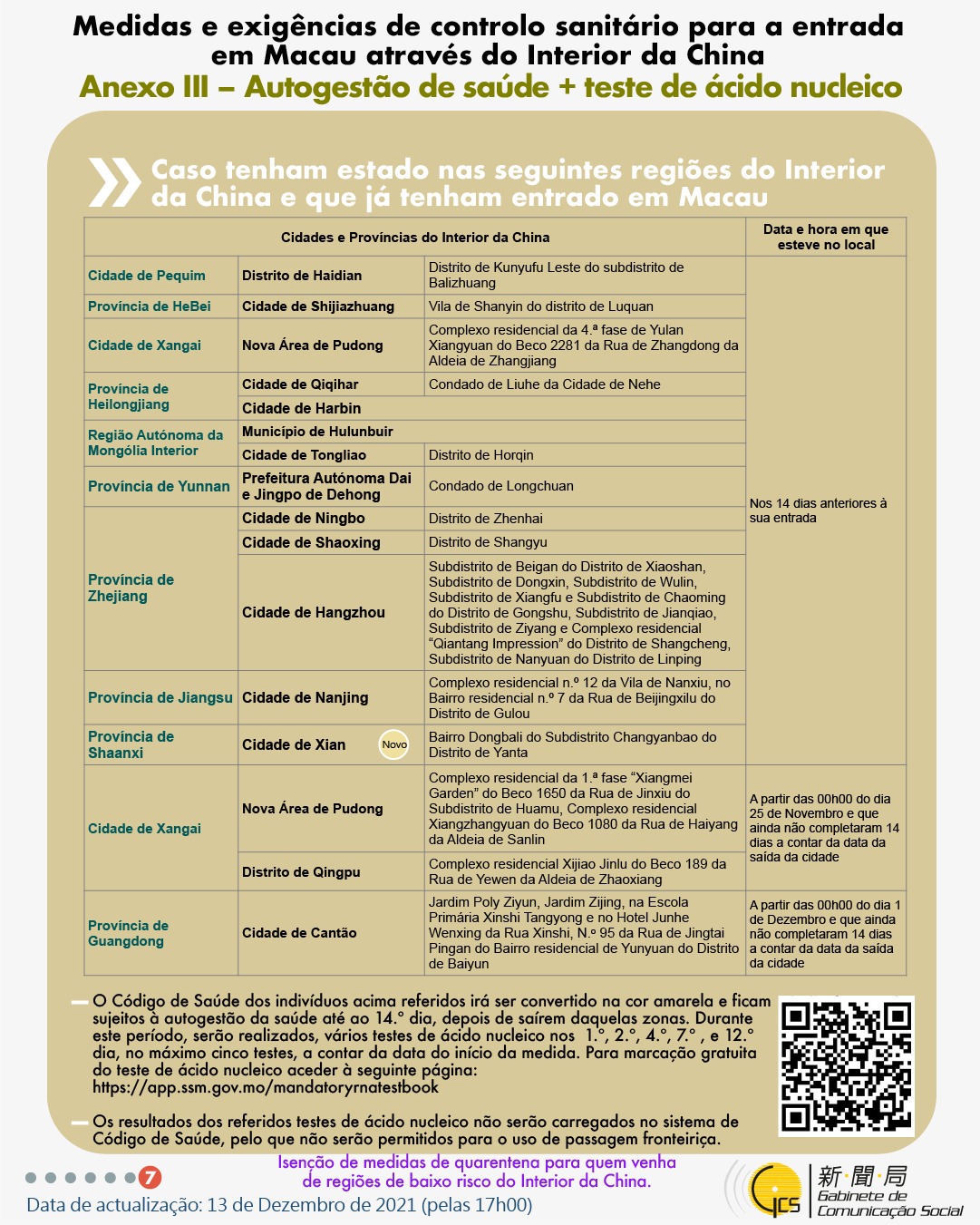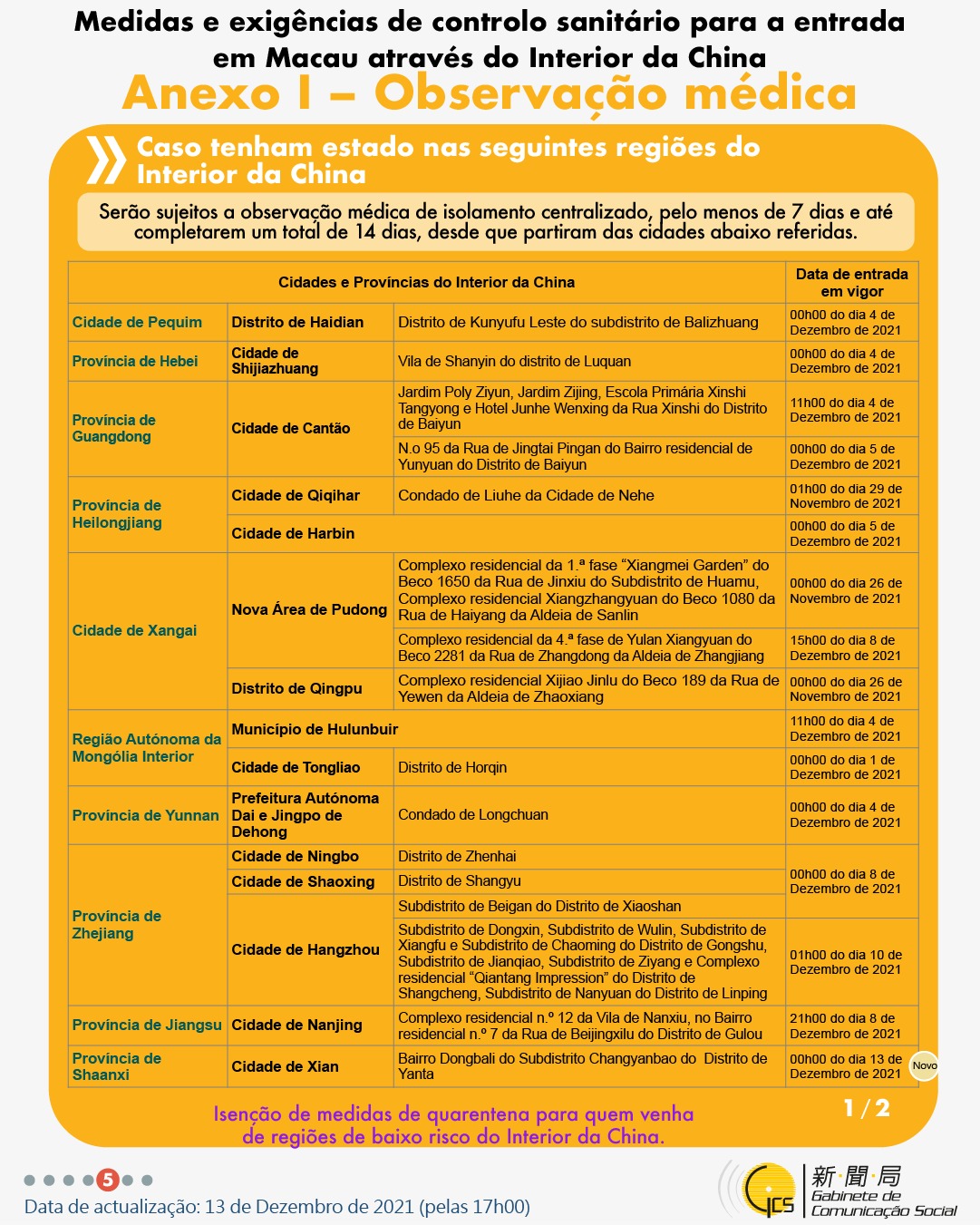 (Infografia)Medidas e exigências de controlo sanitário para a entrada em Macau de indivíduos de diferentes identidades, actualizadas no dia 13 de Dezembro de 2021