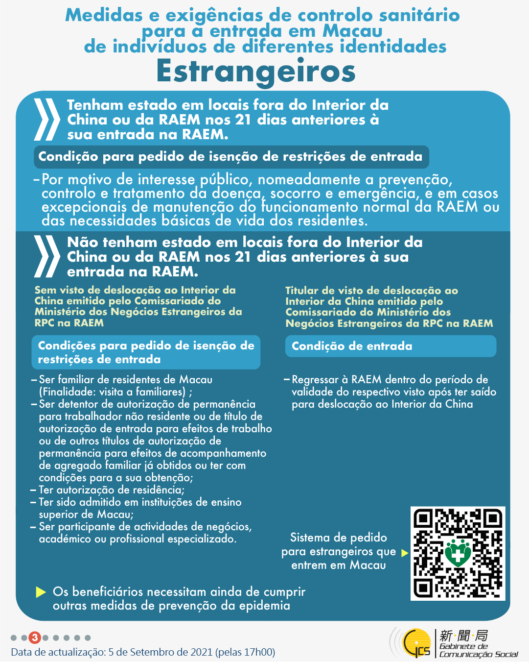• Medidas e exigências de controlo sanitário para a entrada em Macau de indivíduos de diferentes identidades.