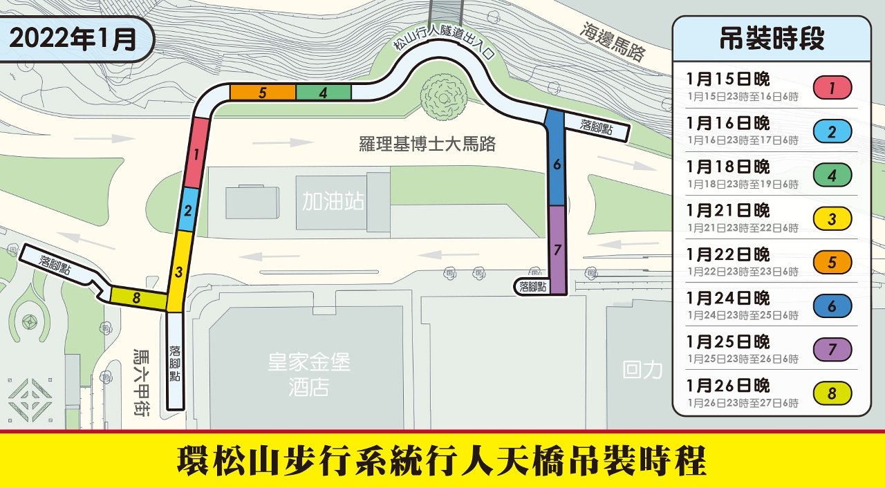 A Direcção dos Serviços de Solos, Obras Públicas e Transportes (DSSOPT) está a promover, de forma acelerada, a Empreitada do Sistema Pedonal Circundante da Guia, tendo a sua obra principal, o túnel pedonal, ficado ligado no ano passado. A montagem da estrutura em aço das duas passagens superiores para peões que atravessarão a Avenida do Dr. Rodrigo Rodrigues será realizada faseadamente a partir das 11H00 da noite de amanhã (dia 15). No intuito de evitar impactos no trânsito durante as horas de ponta, os trabalhos de montagem serão executados durante a madrugada.