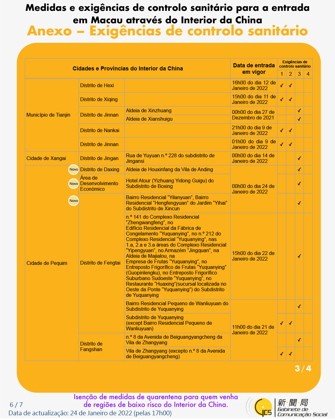 (Infografia)Medidas e exigências de controlo sanitário para a entrada em Macau de indivíduos de diferentes identidades, actualizadas no dia 24 de Janeiro de 2022