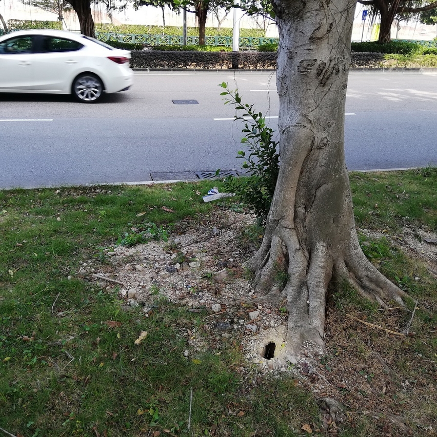 No decorrer de uma inspecção ordinária recente, os trabalhadores de manutenção e protecção de árvores verificaram um abatimento num troço perto do Edifício “Begonia Court” e um buraco na zona verde à sua volta. Após a fiscalização pelos respectivos trabalhadores e a inspecção dos esgotos envolventes, verificou-se que um troço do canal de drenagem de água pluvial sofreu assentamento e que, na ligação do canal, abriu uma brecha e, por isso, há a necessidade de realizar obra de reparação urgente no canal. Assim, para colaborar com a obra, as duas árvores próximas precisam ser transferidas e replantadas na mesma zona verde, com vista a manter a paisagem arborizada geral da referida avenida.