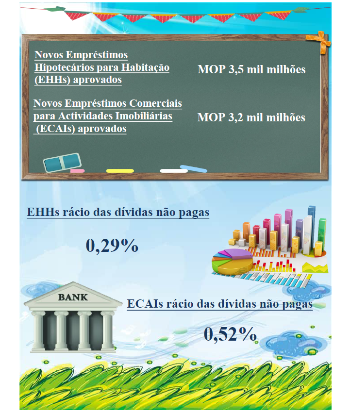 O saldo bruto dos ECAIs cresceu 0,3% e atingiu MOP162,2 mil milhões em relação ao mês anterior, mas registou um decrescimento de 2,5% em comparação com o período homólogo do ano transacto. Destes empréstimos, 93,6% foram concedidos aos residentes. Relativamente ao mês anterior, o saldo bruto dos ECAIs destinados aos residentes cresceu 0,3% mas aos não-residentes decresceu 0,4%.
