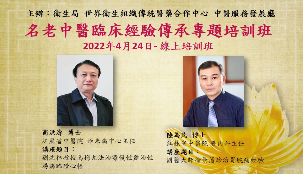Recentemente, decorreu online a 4.ª “Formação temática sobre a transmissão de experiências clínicas por médicos reconhecidos da medicina tradicional chinesa de 2022”, iniciativa organizada pelo Centro de Cooperação de Medicina Tradicional da OMS (Macau) em conjunto com o Departamento de Desenvolvimento dos Serviços de Medicina Tradicional Chinesa, unidades subordinadas aos Serviços de Saúde do Governo da Região Administrativa Especial de Macau. Nesta formação, especialistas conceituados da medicina tradicional chinesa (MTC) do Interior da China: Dr. Lu Weimin e Dr. Shang Hongtao, directores do Hospital de Medicina Tradicional Chinesa da Província de Jiangsu, foram convidados para apresentar, via transmissão em directo, duas palestras temáticas intituladas respectivamente “Experiência do mestre da MTC, Xu Jingfan no âmbito de diagnóstico e tratamento de dor de estômago” e “Entendimento via investigação e prática sobre o tratamento de Wumeiwan do professor Liu Shenlin para a enteropatia crónica e dificilmente curável”. Ambos os oradores, com um profundo conhecimento académico e uma vasta experiência clínica no âmbito da MTC, participaram, durante a formação, activamente na interacção e na partilha de opiniões académicas e experiências práticas com os médicos, mestres e profissionais da MTC de Macau.