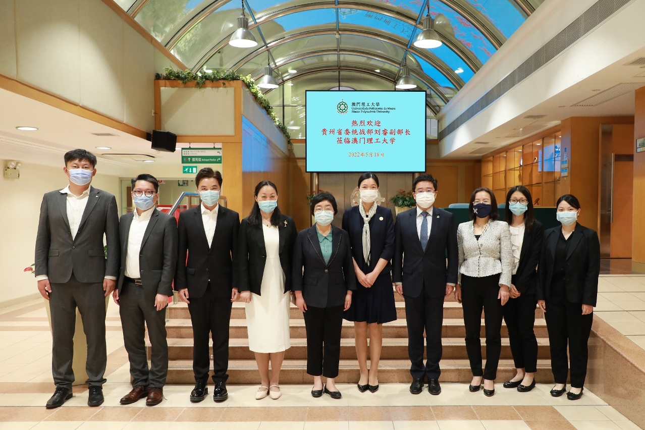 Uma delegação do Departamento de Trabalho da Frente Unida (DTFU) do Comité Provincial de Guizhou do Partido Comunista Chinês, liderada por Liu Rui, subchefe do Departamento, visitou a Universidade Politécnica de Macau (UPM) no dia 18 de Maio, tendo sido recebida pela Doutora Lei Ngan Lin, Vice-Reitora da UPM. As duas partes trocaram opiniões sobre a promoção da “Cooperação Aprofundada entre Guizhou e Macau no campo do ensino e no enriquecimento do princípio “Um País, Dois Sistemas”, esperando promover ainda mais a cooperação entre Guizhou e Macau no ensino superior e na ampliação da plataforma de dois sentidos (Guizhou-Macau/Macau-Guizhou) para a colaboração em vários domínios, especialmente na formação de talentos, formação de docentes e em termos de indústria-academia-investigação.