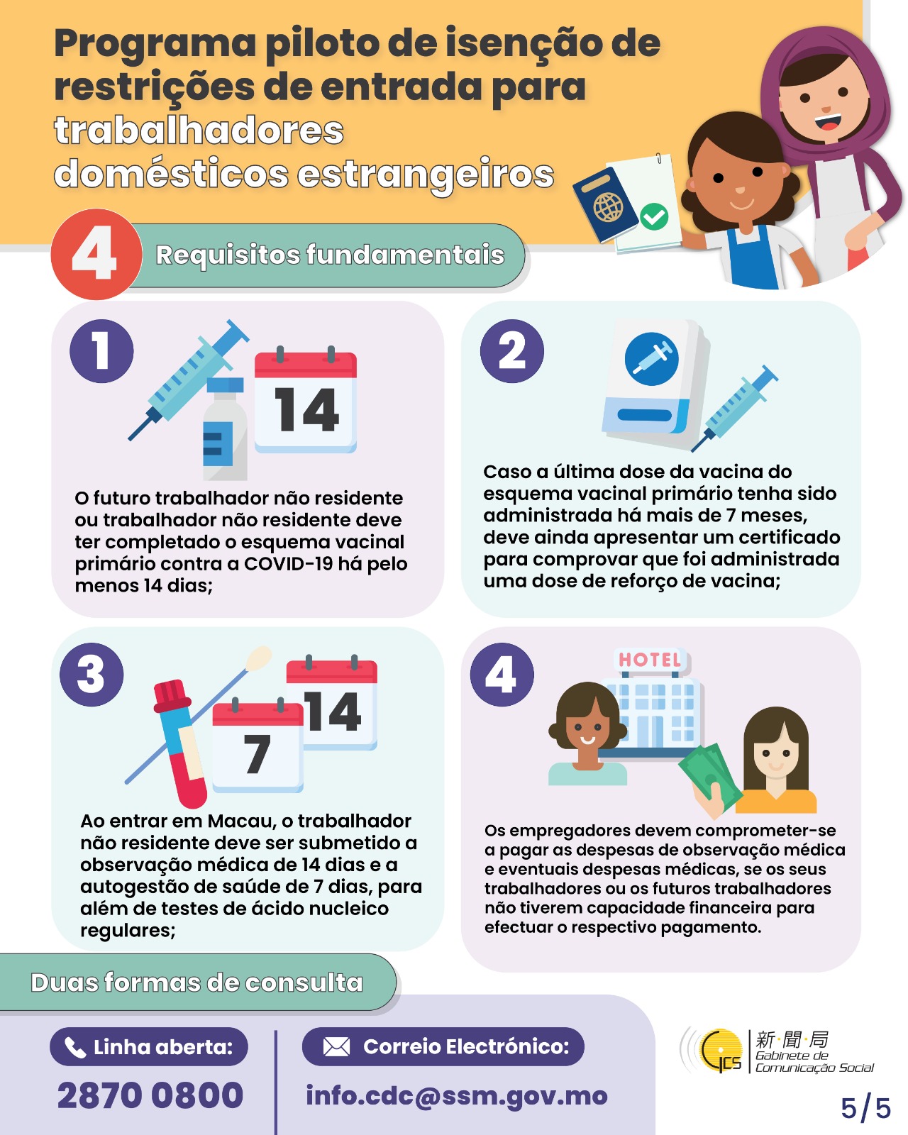 • Programa piloto de isenção de restrições de entrada para trabalhadores domésticos estrangeiros --- 4ª fase