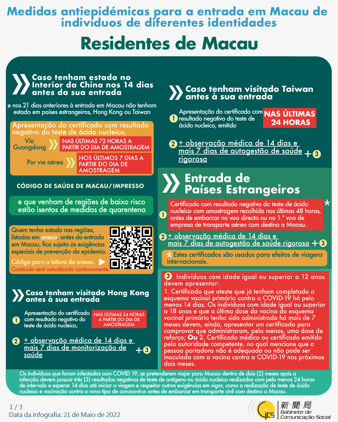 (Infografia)Medidas antiepidémicas para a entrada em Macau de indivíduos de diferentes identidades, actualizadas no dia 26 de Maio de 2022