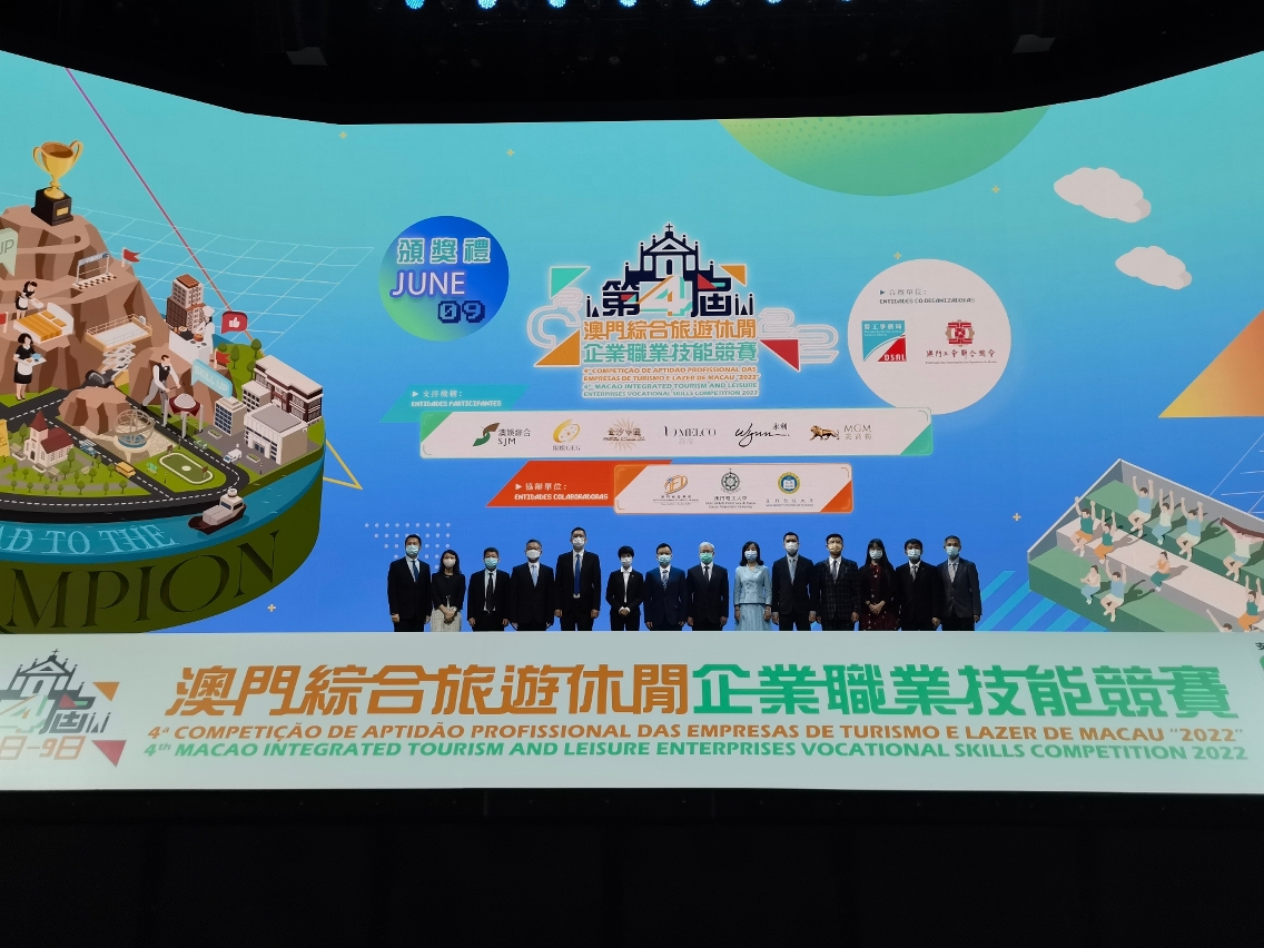 Concluiu com enorme sucesso a Quarta Competição de Aptidão Profissional das Empresas de Turismo e Lazer de Macau de 2022 organizada pela Direcção dos Serviços para os Assuntos Laborais (DSAL) em colaboração com a Federação das Associação dos Operários de Macau (FAOM), tendo a cerimónia de entrega de prémios realizada ontem no MGM Theater atribuindo os respectivos prémios aos concorrentes que obtiveram resultados excelentes.