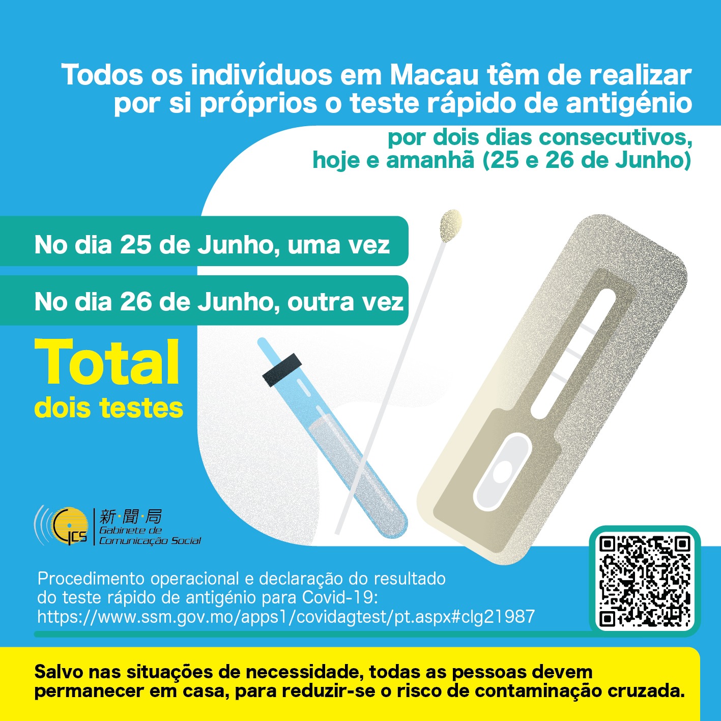 (Infografia)Todos os indivíduos têm de realizar por si próprios o teste rápido de antigénio por dois dias consecutivos, hoje e amanhã (25 e 26 de Junho)