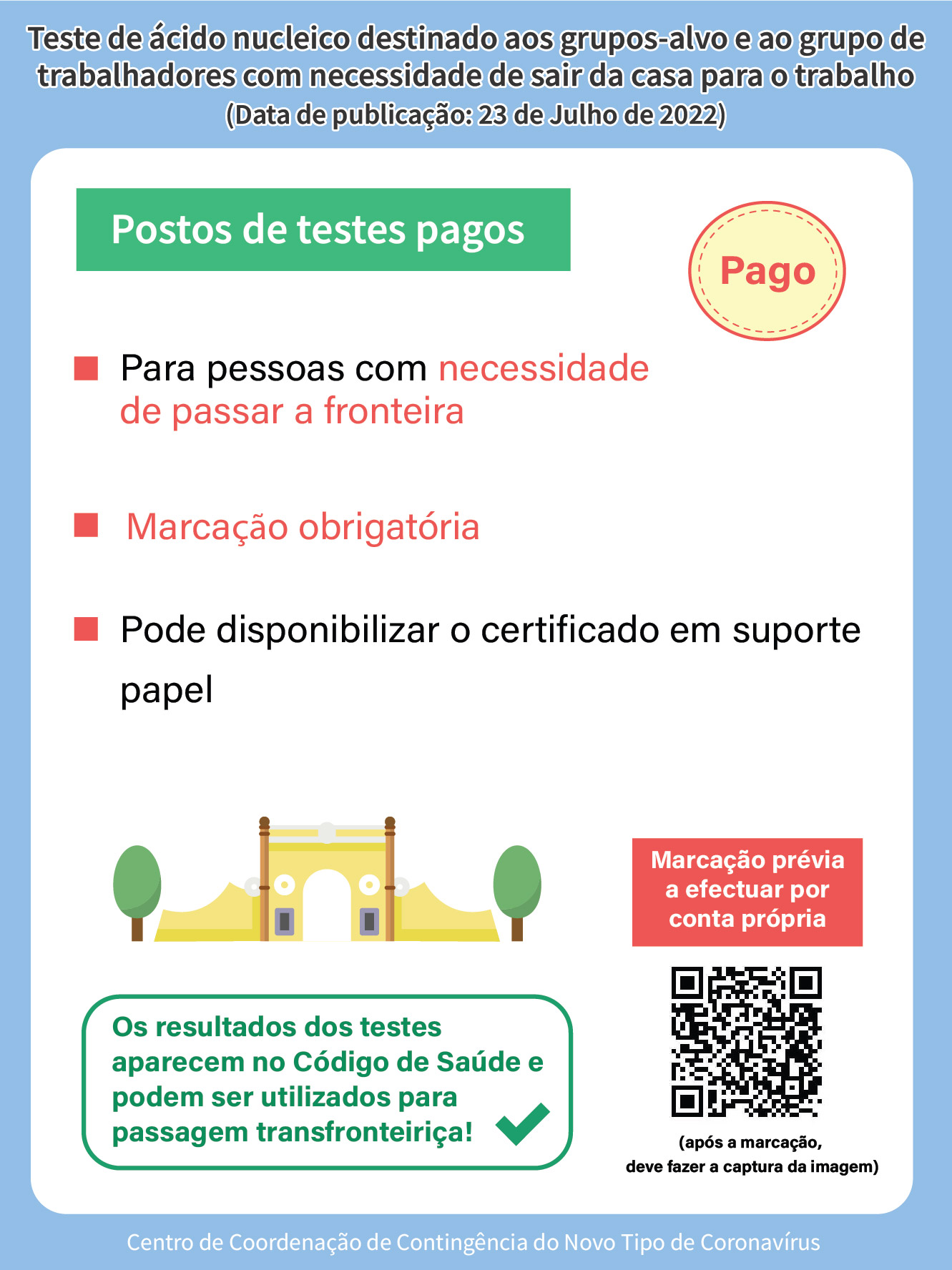 | Postos de Testes Pagos (Marcação obrigatória, resultado exibido no código de saúde e fornecido em forma de papel) |
