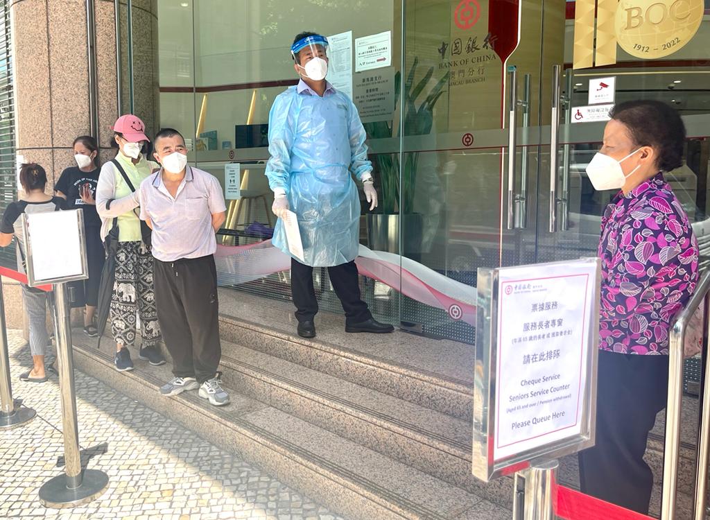 Caso necessite de se deslocar pessoalmente às agências, os residentes podem contactar, em primeiro lugar, o seu banco, solicitando informações relativas às agências “abertas” e aos tipos de serviços a prestar. Nas situações em que se verifiquem grandes fluxos de pessoas, recomenda-se aos residentes que saiam, temporariamente, das instalações dos bancos, depois de obter a senha distribuída e, em seguida, regressem, na hora indicada na senha, para acompanhamento do seu assunto, que se reputa como necessário.