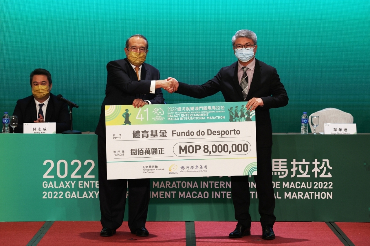 A Comissão Organizadora anunciou nesta conferência de imprensa que o Galaxy Entertainment Group irá ser o patrocinador principal da “Maratona Internacional de Macau” de 2022, e é o décimo nono ano consecutivo como patrocinador principal do Evento.
