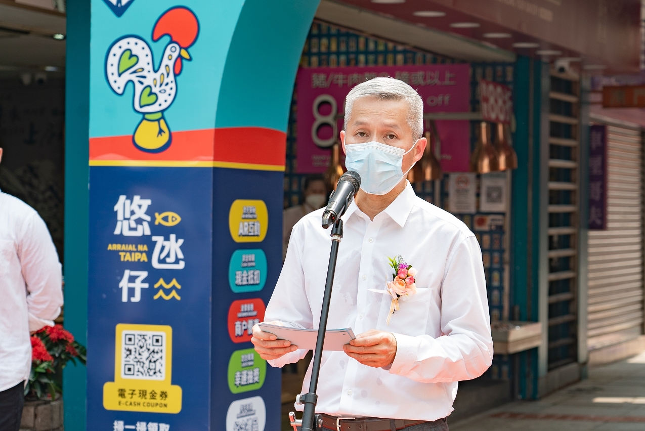 Durante o seu discurso, o Director da DSEDT, Dr. Tai Kin Ip, manifestou que, o Governo da RAEM tem promovido constantemente o desenvolvimento da economia comunitária, esforçando-se para criar um bom ambiente de negócios nos bairros comunitários. Ao mesmo tempo, está também empenhado em apoiar as pequenas e médias empresas na aplicação da tecnologia para realizar a inovação de operação e gestão. A DSEDT lançou, em colaboração com as associações comerciais, o “Arraial na Taipa”, em que 4 interacções RA da actividade encontraram disponível preliminarmente antes do Festival da Lua, para atrair residentes e turistas a experienciarem, por forma a dinamizar o fluxo de pessoas.