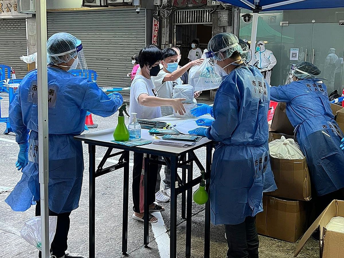 O Instituto para os Assuntos Municipais (IAM), o Corpo de Polícia de Segurança Pública (CPSP) e o Instituto de Acção Social (IAS) constituíram o Grupo de Apoio à Subsistência, o qual iniciou os trabalhos de averiguação aos moradores-alvo do edifício da Zona de Código de Saúde de Cor Vermelha para inteirar-se da quantidade real de moradores e das suas necessidades básicas, de forma a fornecer os artigos de subsistência. Ao mesmo tempo, tem-se empenhado em apoiar os Serviços de Saúde (SSM) a realizar, de forma ordenada, os trabalhos de amostragem de ácido nucleico viral a todos os moradores, divididos em grupo, no edifício vedado.