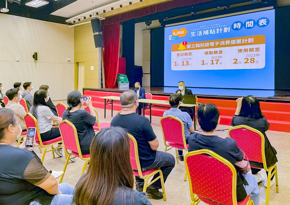 Desde a publicação do “Plano de subsídio de vida”,  Direcção dos Serviços de Economia e Desenvolvimento Tecnológico (DSEDT) e a Autoridade Monetária de Macau (AMCM) realizaram, de forma contínua, sessões de esclarecimento destinados aos residentes e representantes das associações, apresentando os pormenores sobre o levantamento e utilização do subsídio da vida. Durante as sessões de esclarecimentos, os representantes governamentais responderam detalhadamente a todas as questões de interesse dos presentes, com vista a tirar as dúvidas junto dos residentes.