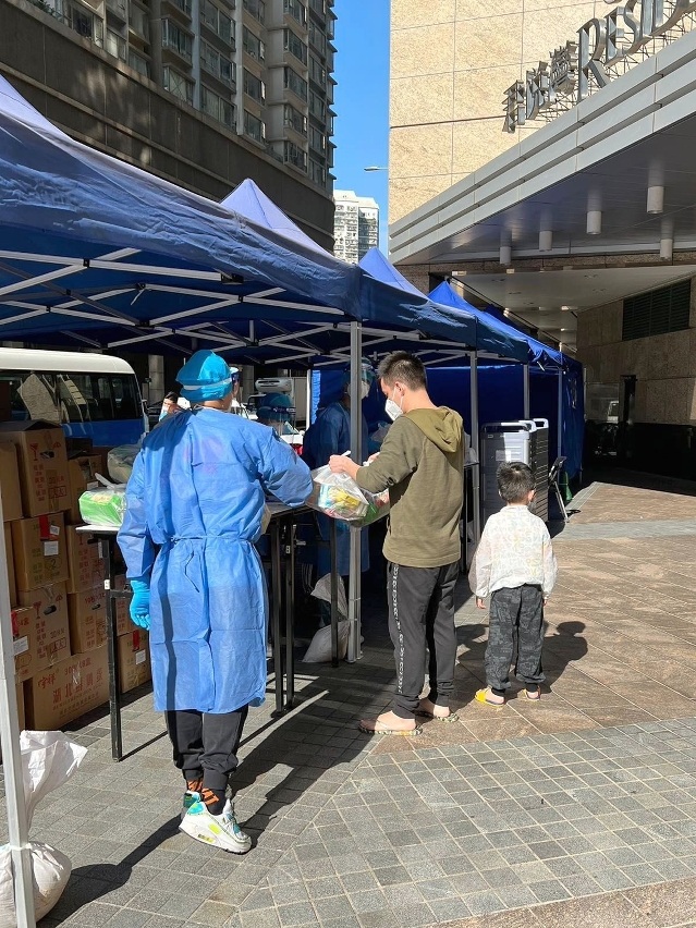 O Instituto para os Assuntos Municipais (IAM), o Corpo de Polícia de Segurança Pública (CPSP) e o Instituto de Acção Social (IAS) constituíram o Grupo de Apoio à Subsistência, o qual iniciou os trabalhos de averiguação aos moradores-alvo do edifício da Zona de Código de Saúde de Cor Vermelha para inteirar-se da quantidade real de moradores e das suas necessidades básicas, fornecendo alimentos e materiais. Ao mesmo tempo, tem-se empenhado em apoiar os Serviços de Saúde (SSM) a realizar, de forma ordenada, os trabalhos de amostragem de ácido nucleico viral a todos os moradores, divididos em grupo, no edifício vedado.