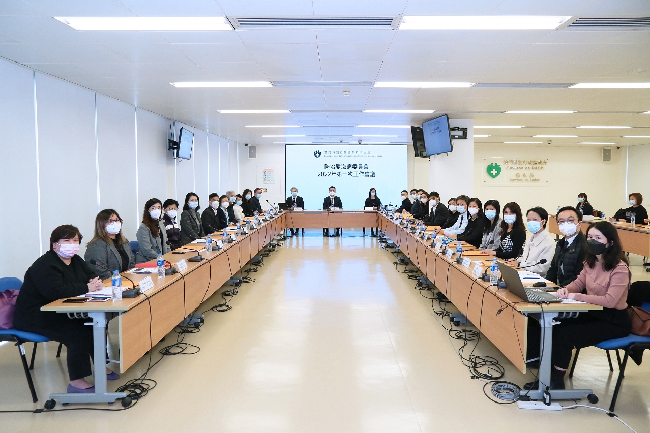 A Comissão de Luta Contra a SIDA do Governo da Região Administrativa Especial de Macau realizou, terça-feira (dia 6 de Dezembro), a 1.ª reunião de trabalho de 2022, presidida pelo Director dos Serviços de Saúde, Dr. Lo Iek Long, na qual estiveram também presentes: o Director do CHCSJ, Dr. Kuok Cheong U, o chefe do Departamento de Prevenção e Tratamento da Dependência do Jogo e da Droga do IAS, Dr. Cheang Io Tat, o chefe do Departamento do Ensino Não Superior da DSEDJ, Dr. Wong Ka Ki e a secretária-geral da Comissão de Luta Contra a SIDA, Dr.ª Leong Iek Hou, entre outros membros e representantes dos serviços públicos, instituições médicas, organizações e associações.