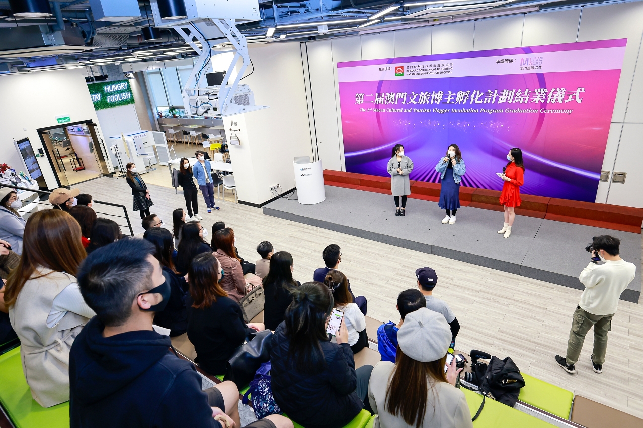 Realizou-se hoje (dia 6), no Centro de Incubação de Negócios para os Jovens de Macau, a cerimónia de encerramento da 2.ª edição do “Plano de incubação para líderes de opinião de viagens de Macau”, organizada pela Direcção dos Serviços de Turismo (DST), com a coorganização da Associação de Transmissão Directa de Macau. O plano deste ano, que teve como tema a promoção da gastronomia, e consistiu num “Campo de treino de criação de conteúdos” e numa nova formação adicionada nesta edição de “Aulas com Mestres”, contou com 65 formandos que concluíram com sucesso o curso de formação.