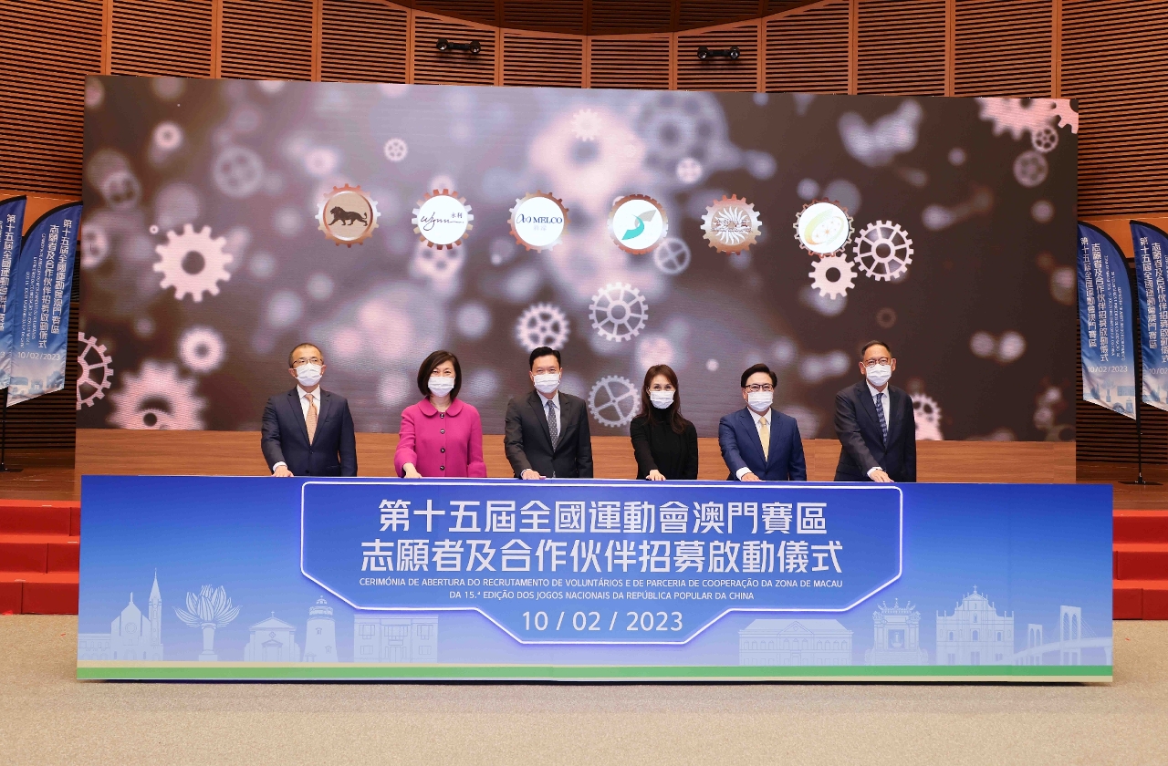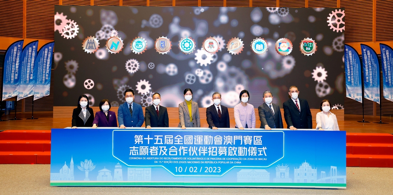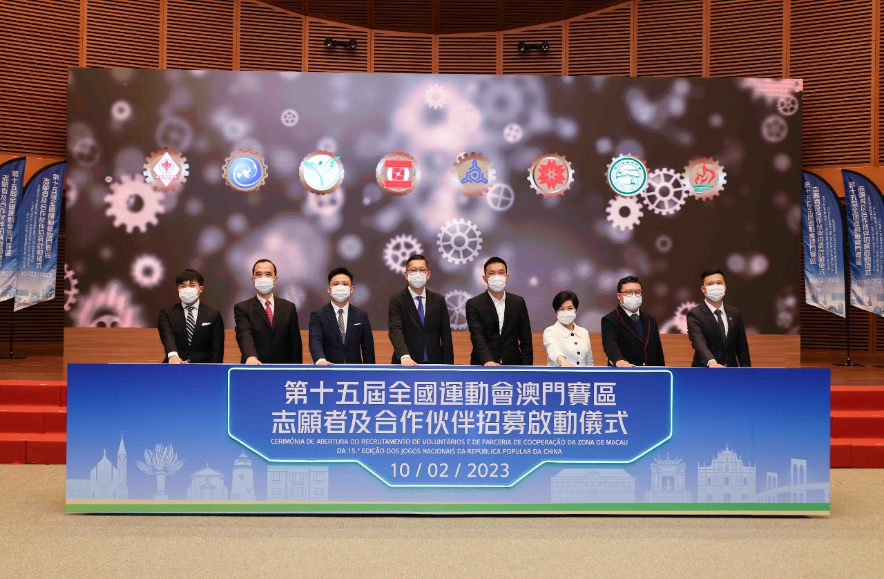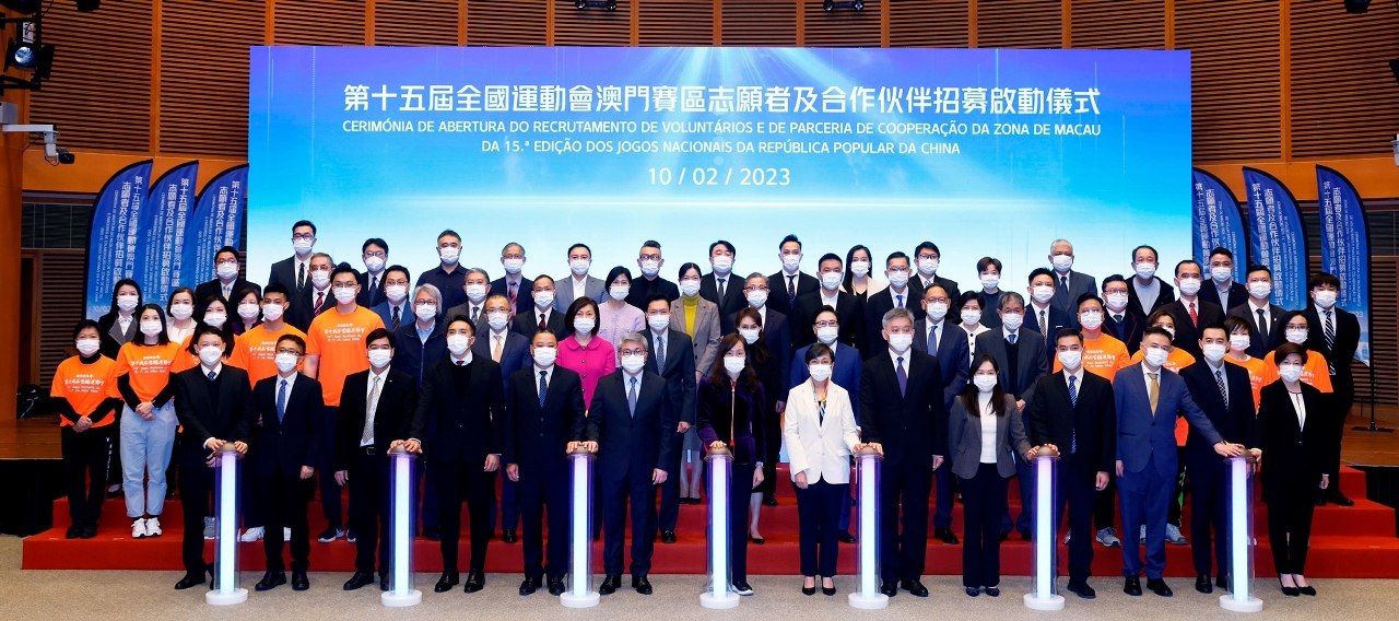 A cerimónia marcou também o início de trabalhos de recrutamento de voluntários da Zona de Macau da 15.a edição dos Jogos Nacionais da República Popular da China. Na zona de Macau irá recrutar no total 10,000 voluntários, para os interessados nascidos em 2007 ou antes (maiores de 16 anos), podem inscrever-se a partir de hoje através da página electrónica do Instituto do Desporto www.sport.gov.mo/zh/calendary/type/item/id/8973 ou da conta única de Macau. Com essa energia e apoio sólido dos voluntariados para proporcionar o sucesso da realização da 15.ª edição dos Jogos Nacionais da República Popular da China da Zona de Macau, mostrando uma edição “simples, seguro, maravilhoso” de Jogos Nacionais.