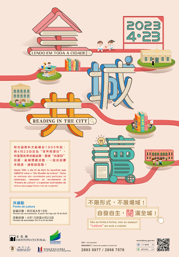 A “Semana da Biblioteca de Macau de 2023”, co-organizada pelo Instituto Cultural, pela Direcção dos Serviços de Educação e de Desenvolvimento da Juventude, pela Biblioteca da Universidade de Macau e pela Associação de Bibliotecários e Gestores de Informação de Macau, irá promover uma série de actividades de leitura, de 15 de Abril a 14 de Maio. Os Dias de Promoção terão lugar nos dias 22 e 23 de Abril (Sábado e Domingo), em forma de festival, no Centro Cultural de Macau, proporcionando “Troca de Livros”, jogos de banca, Feira do Livro e outras actividades, de modo a encorajar mais residentes a desenvolverem o hábito de leitura. A participação de todos os residentes é bem-vinda.