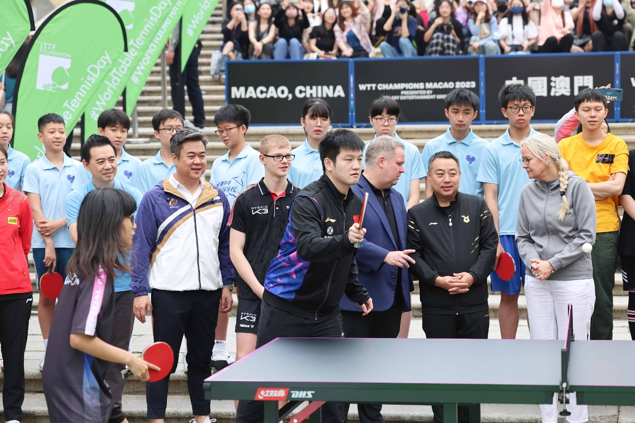 Estiveram presentes o Presidente da ITTF, Petra Sörling, o 1.º Vice-Presidente da Federação Internacional de Ténis de Mesa (ITTF), o Presidente do Conselho de Administração da WTT, e Presidente da Associação Chinesa de Ténis de Mesa, Liu Guoliang, o Director Executivo da Federação Internacional de Ténis de Mesa (ITTF), Steve Dainton, o Director de Gestão da WTT, Matt Pound, o Presidente do Instituto do Desporto, Pun Weng Kun, o Vice-Presidente das Relações Públicas da sede do Grupo Galaxy Entertainment, Buddy Lam e o Vice-Presidente da Associação Geral de Ping-Pong de Macau, O I Chau, na actividade de Dia Mundial de Ténis-de-mesa. Muitos jogadores convidados incluindo Fan Zhendong, LIANG Jingkun, LIN Shidong, Alexis Lebrun, Félix Lebrun, Sun Yingsha, Wang Yidi, Chen Xingtong, Qian Tianyi e Zhu Sibing, alunos da Escola de Ténis-de-Mesa Juvenil e de Macau Special Olympics e o grupo de convidados formaram grupos para jogar juntos ténis-de-mesa, criando atmosfera animada.