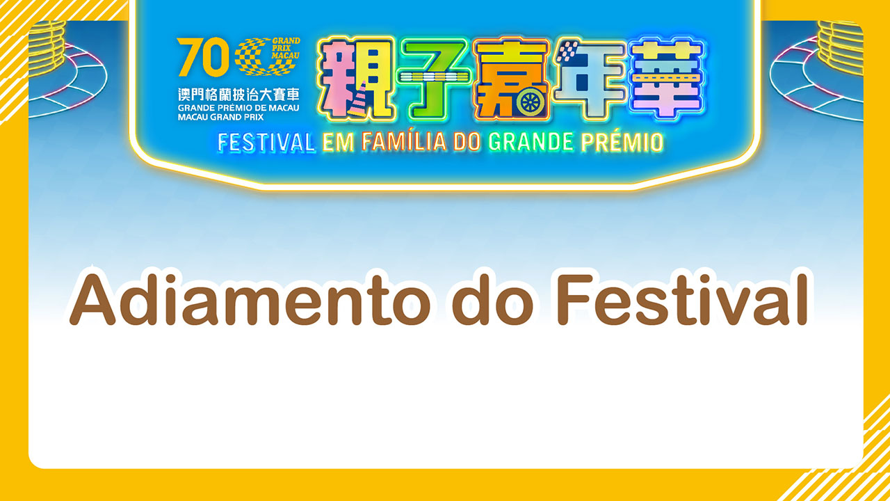 Devido à situação de instabilidade meteorológica, a Comissão Organizadora do Grande Prémio anuncia que o Festival em Família do 70º Grande Prémio de Macau que está previsto realizar-se nos dias 29 a 30 de Abril, no Kartódromo de Coloane, será adiado, sendo que a nova data de realização será publicada posteriormente.