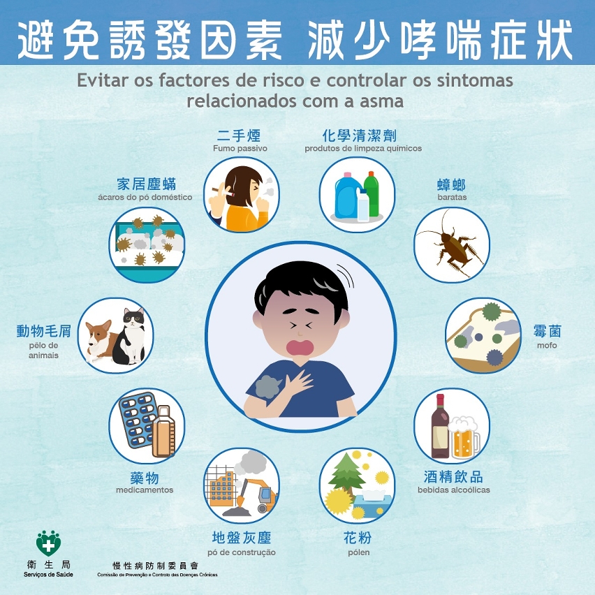 Para o efeito, os Serviços de Saúde têm-se dedicado à prestação de cuidados de saúde primários abrangentes aos residentes de Macau, e a detecção precoce de doenças crónicas, o tratamento precoce e o tratamento de medicamentos não causam encargos económicos aos residentes, até a maior parte dos medicamentos para tratamento médico está coberta pelo seguro de saúde, o que faz com que os doentes não precisem de pagar as elevadas despesas de tratamento medicamentoso. Além disso, é necessário reforçar os conhecimentos do público sobre a prevenção, controlo e autogestão da asma e reduzir os mal-entendidos sobre os medicamentos para a asma