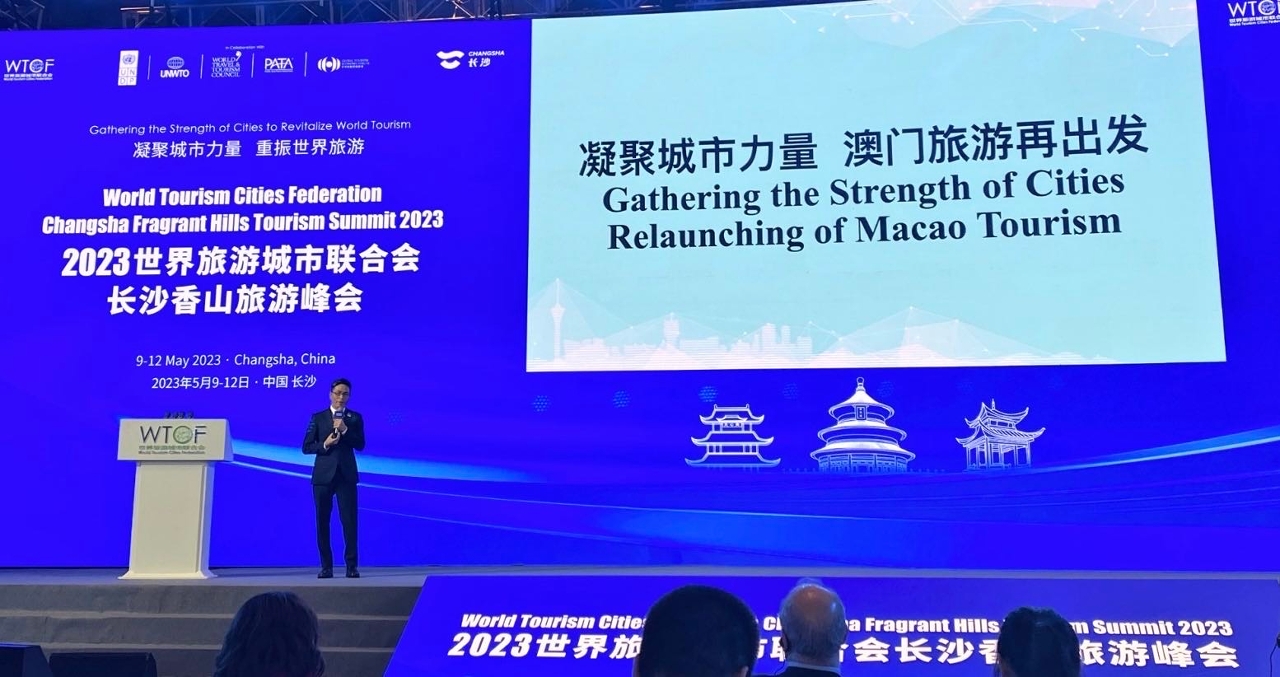 Em representação de Macau, a Direcção dos Serviços de Turismo (DST) participou na “Cimeira de Turismo Colinas Perfumadas Changsha da Federação Mundial de Cidades Turísticas 2023”, que teve lugar em Changsha, província de Hunan, entre 9 e 12 de Maio, para troca de opiniões com representantes de 37 países, incluindo de ministérios e comissões nacionais e das autoridades de Pequim, membros de cidades e instituições da Federação Mundial de Cidades Turísticas (World Tourism Cities Federation – WTCF), empresas de turismo de renome, entre outros, sobre a situação mais recente da indústria turística de cada território, promovendo o intercâmbio e a cooperação entre as entidades parceiras. O subdirector da DST, Cheng Wai Tong, foi orador convidado numa sessão de discurso temático.