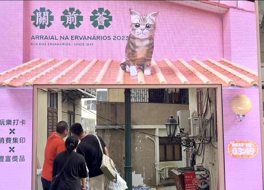 Foram introduzidos elementos de tecnologia visual inovadora no “Arraial na Ervanários 2023”, designadamente tecnologia 3D a olho nu, projecção de tela de nevoeiro e arco de LED, etc., mais ainda, serviu o gato animado e adorável como o tema do evento, e juntamente com o sorteio de pontos acumulados, atraiu pessoas a explorarem e visitarem o bairro comunitário, injectando assim, uma nova vitalidade à zona da Rua dos Ervanários.