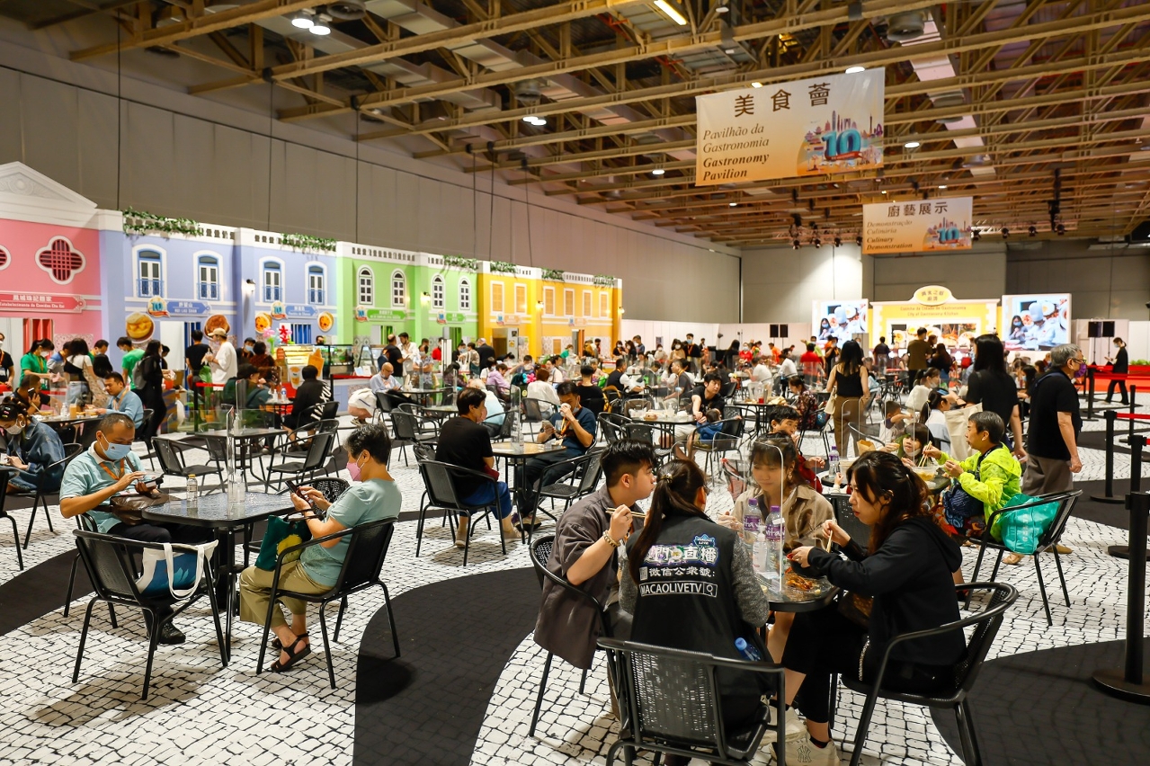 O “Pavilhão da Gastronomia” irá exibir as especialidades de renome de 18 estabelecimentos de restauração e bebidas de Macau, incluindo de locais escolhidos pela lista “iFood Award” de 2022, organizada por associações ligadas à restauração, para que o público possa provar as iguarias típicas de Macau. O público pode provar no mesmo local comida macaense, comida portuguesa, canjas ou guisados de vaca chineses, entre outras iguarias especiais. Este ano, foi adicionado um carrinho ambulante de gelados para vender gelados culturais e criativos característicos de Macau.