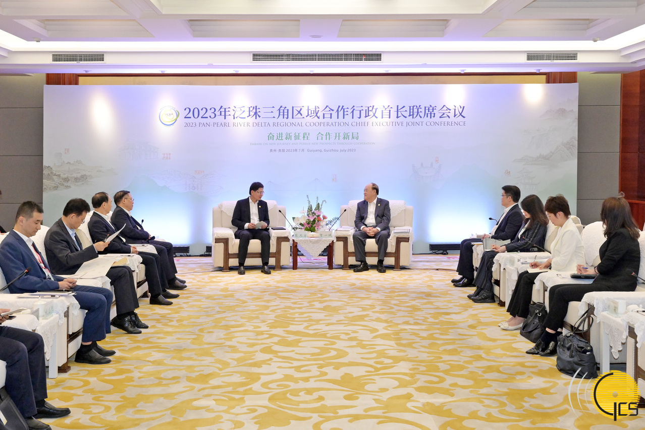 O Chefe do Executivo, Ho Iat Seng, teve, hoje (7 de Julho), no município de Guiyang da Província de Guizhou, um encontro com o presidente da Região Autónoma da Etnia Zhuang de Guangxi, Lan Tianli, no qual abordaram o reforço da cooperação bilateral na área da medicina tradicional chinesa e do turismo, a integração do desenvolvimento e oportunidades entre as duas partes, bem como, a expansão conjunta nos mercados regional e internacional.