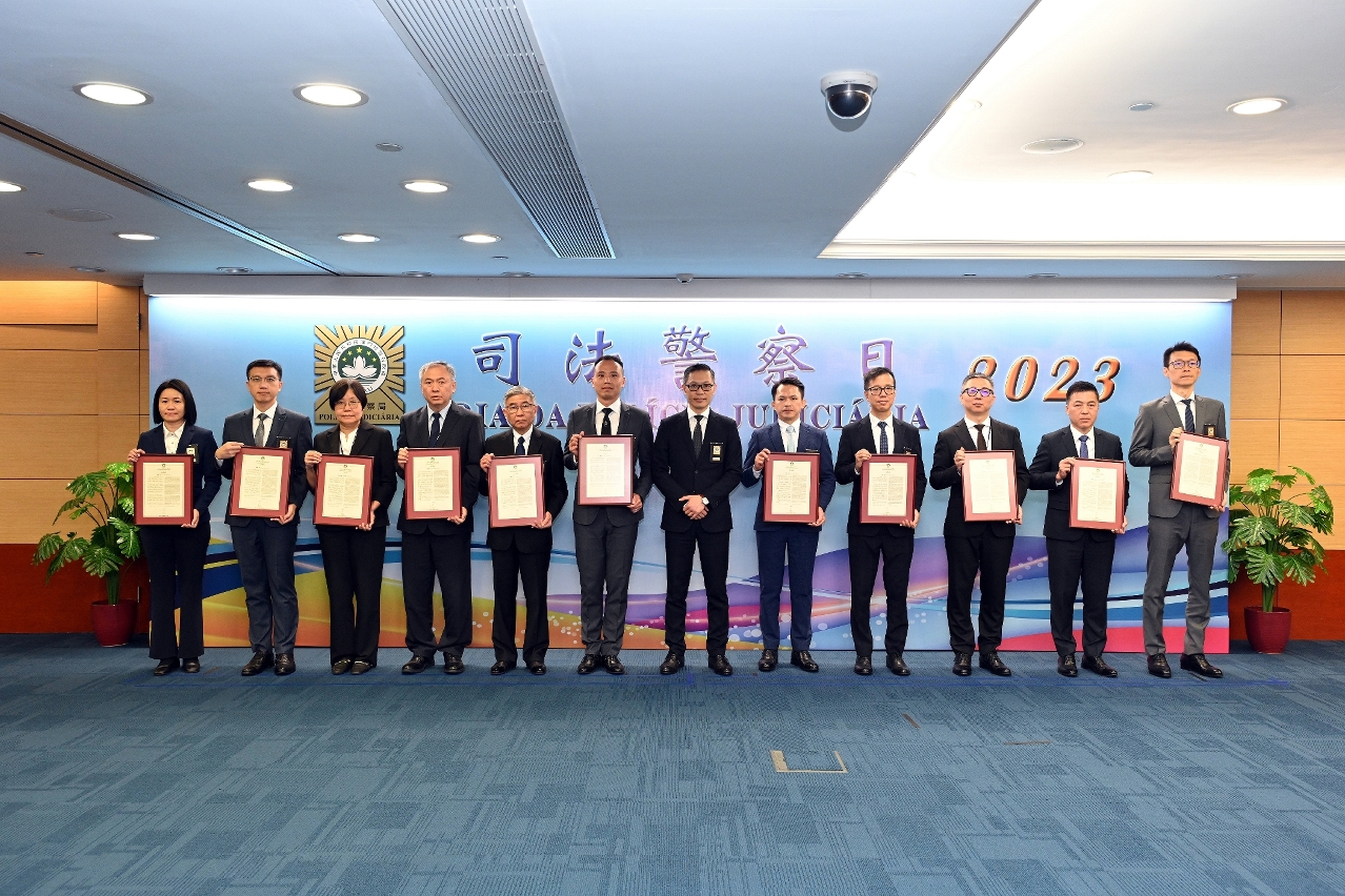 Este ano, foram atribuídas, pelo Secretário para a Segurança, menções de mérito excepcional a 12 funcionários da PJ. Na cerimónia, os convidados de honra entregaram as menções ao pessoal premiado, e foram concedidos louvores colectivos a 9 subunidades de investigação criminal e à equipa de trabalho que participou na “Exposição sobre a Educação da Segurança do Estado” de 2023. De seguida, os dirigentes da PJ entregaram louvores individuais a 115 funcionários e louvores colectivos a 3 equipas de trabalho. Por fim, o Director SIT encorajou o pessoal e as equipas premiados a cumprirem firmemente as suas missões, procurarem constantemente o aperfeiçoamento e, ainda, a lembrarem-se sempre das expectativas dos superiores hierárquicos e da sociedade.