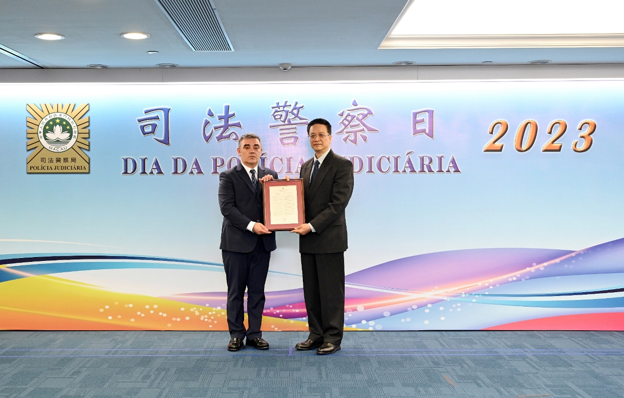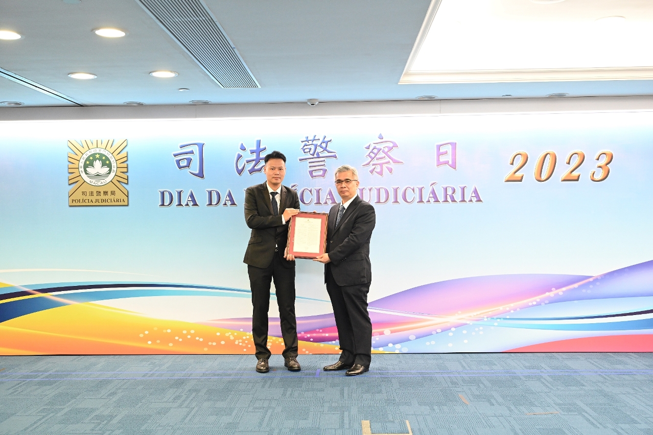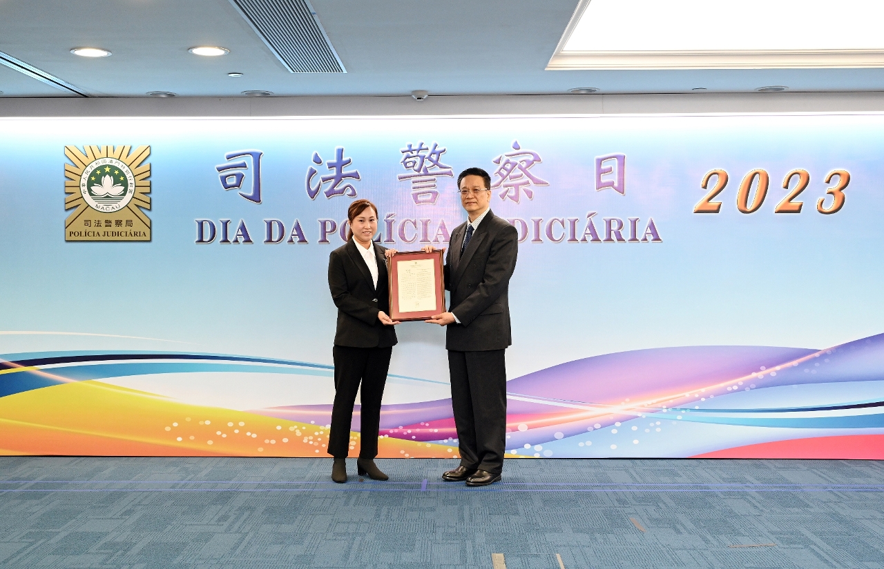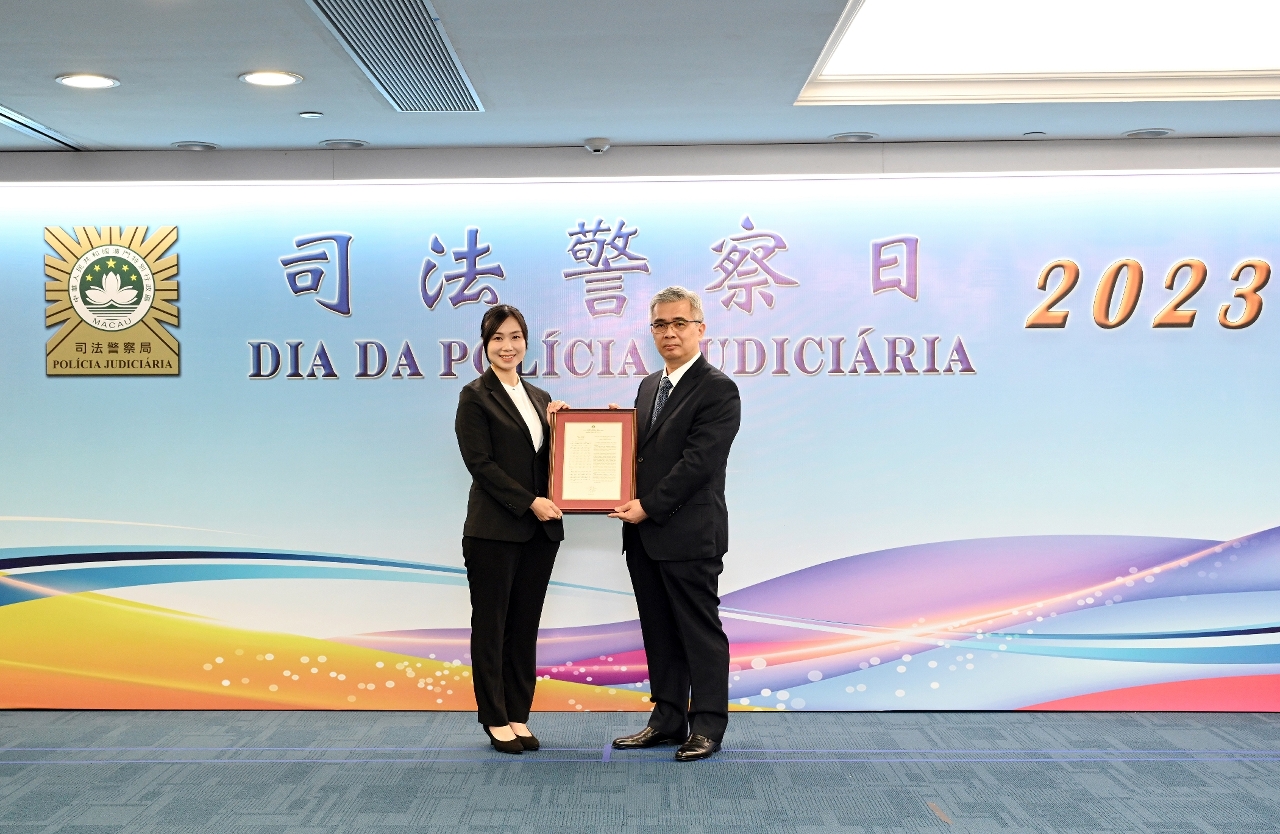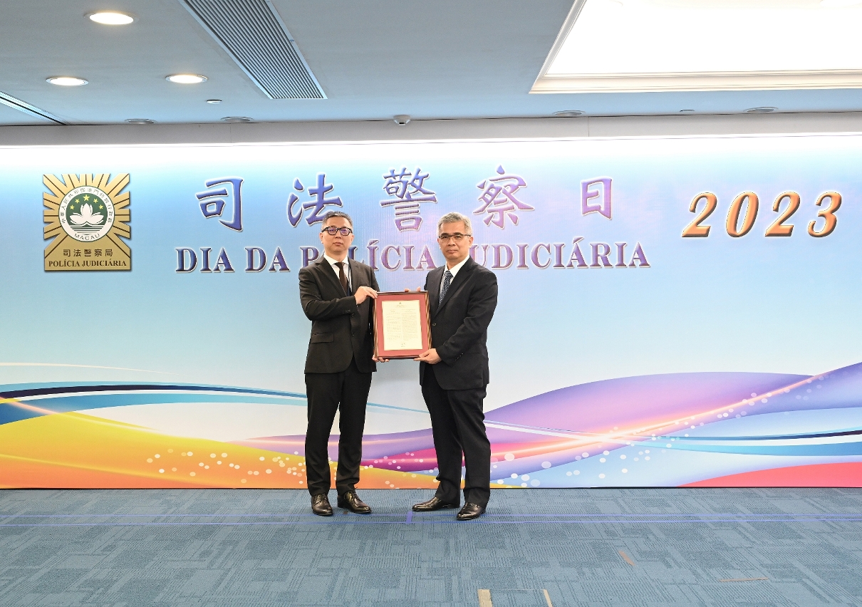 A Polícia Judiciária realizou hoje (dia 19), no Edifício Sede, a Cerimónia Anual de Entrega de Prémios do “Dia da Polícia Judiciária”, louvando os funcionários e subunidades que tiveram um desempenho excelente no trabalho com o fim de elogiar a excelência conquistada e incentivar o seu moral, promovendo a cultura da equipa policial baseada no conceito “Ter por base a polícia”, onde fez um balanço sobre o trabalho desenvolvido pela PJ no âmbito da defesa da segurança nacional e estabilidade da RAEM, de prevenção e combate ao crime e de impulsionamento do policiamento comunitário.