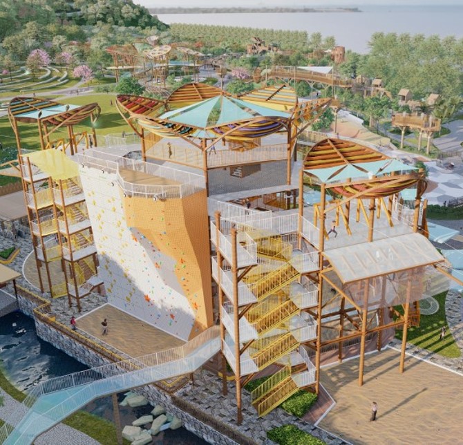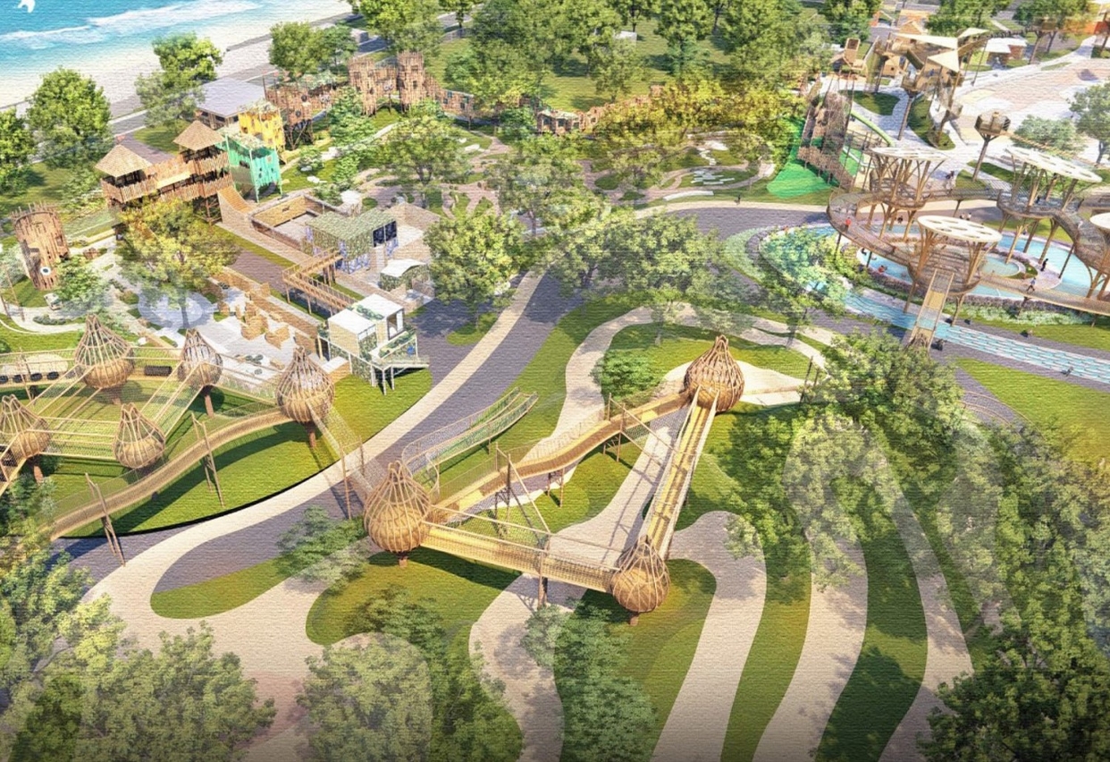 Tendo em conta que o Campo de Aventuras se situa junto ao mar, apoiado pela colina e localizado na área de captação de água da zona de Hac Sá, é necessário construir uma série de infra-estruturas na fase inicial da construção, incluindo a construção da rede de drenagem subterrânea e outras instalações de prevenção de inundações e de drenagem, a fim de garantir que, no futuro, a zona do campo de aventuras não seja afectada pelas inundações. Ao mesmo tempo, as instalações de iluminação e de abastecimento de água irão ser reconstruídas; as infra-estruturas e edifícios ecológicos serão concebidos em conformidade com a cidade-esponja, que, através da filtragem das instalações-esponja, irá reduzir o teor de poluentes na drenagem de águas pluviais, não afectando a qualidade das águas circundantes. Simultaneamente, serão construídas instalações de apoio, tais como parque de estacionamento multiandares, centro de actividades e espaço de restauração.