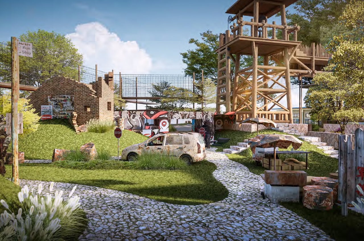Para o Campo de Aventuras, estão planeadas 12 áreas temáticas e mais de 200 modalidades de aventura “aquática, terrestre e aérea” para todas as faixas etárias, incluindo instalações modernas, tais como a primeira pista de bicicletas de montanha em Macau, o campo de wargame com uma área de mais de 4500 metros quadrados, a torre central de aventura de seis andares e a tirolesa multitorres com mais de 500 metros de comprimento, bem como o campo de campismo com uma área superior a 6000 metros quadrados, um relvado central com uma área superior a 4500 metros quadrados, uma zona de divulgação científica do ribeiro natural, uma fonte de água para crianças, um jardim natural de divulgação científica, jogos aquáticos diversificados, zona de churrasco, entre outras instalações, de modo a proporcionar a toda a população de Macau espaços educativos, culturais, recreativos e desportivos diversificados.